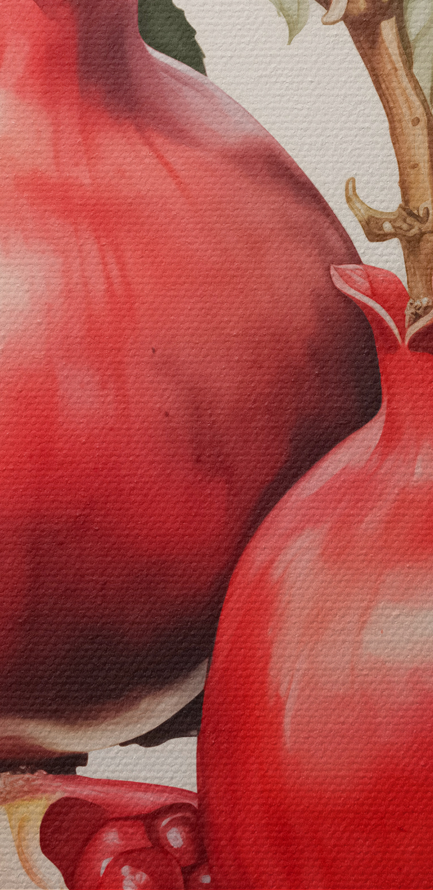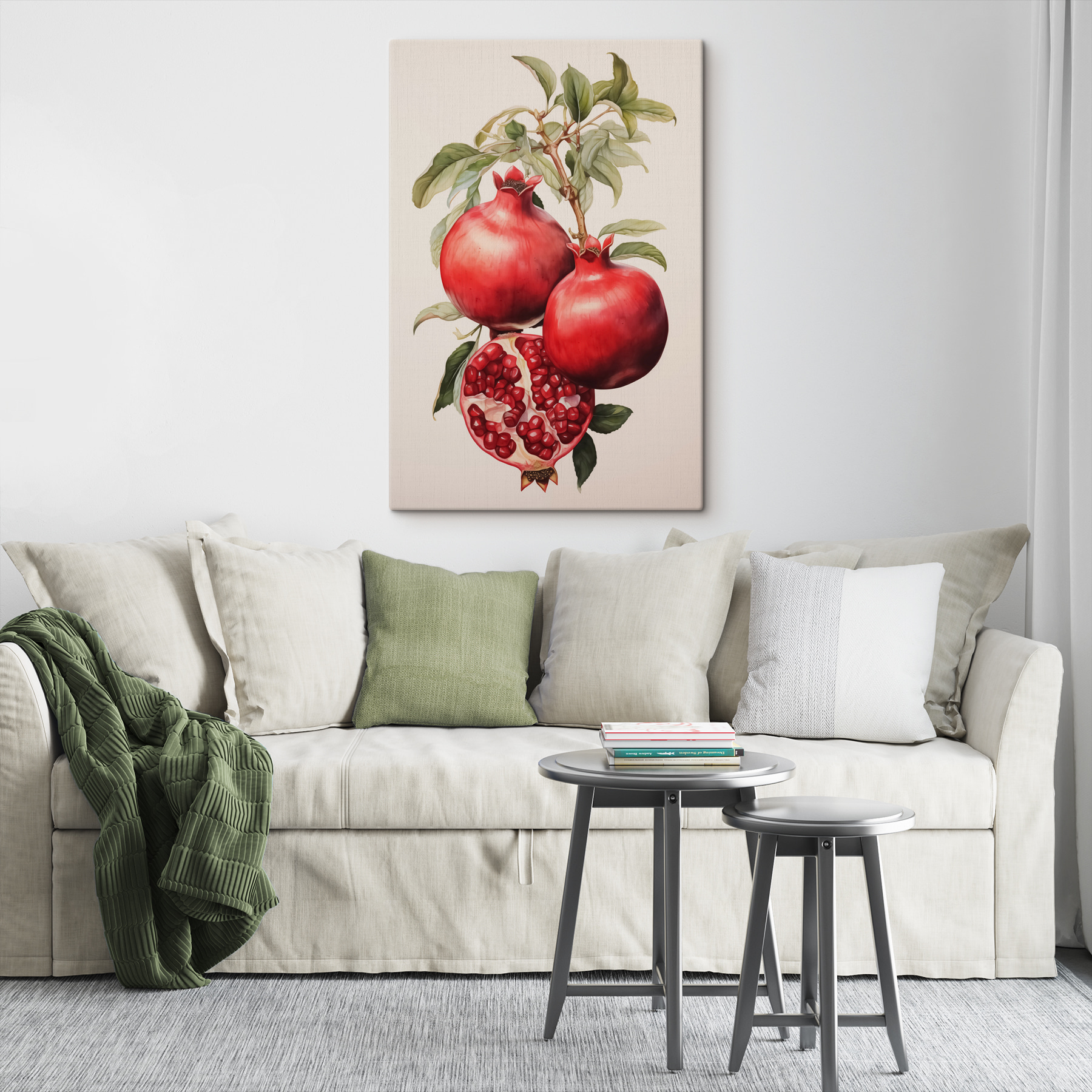 Fleur je kamer op met deze prachtige canvasprint met granaatappels, de sappige juweeltjes uit de natuur. Stel je de levendige rode tinten voor tegen je muur, waardoor elke kamer direct levendig en uitnodigend aanvoelt. Het is alsof je een stukje tuin in huis hebt! Dit kunstwerk is niet alleen decor; het geeft een frisse energie die een gesprek op gang kan brengen bij een glas wijn of een gezellig praatje bij de koffie. Perfect voor keukens of eetkamers, het is een lust voor het oog dat perfect past bij de heerlijke momenten in het leven – vraag alleen niet om echt fruit!