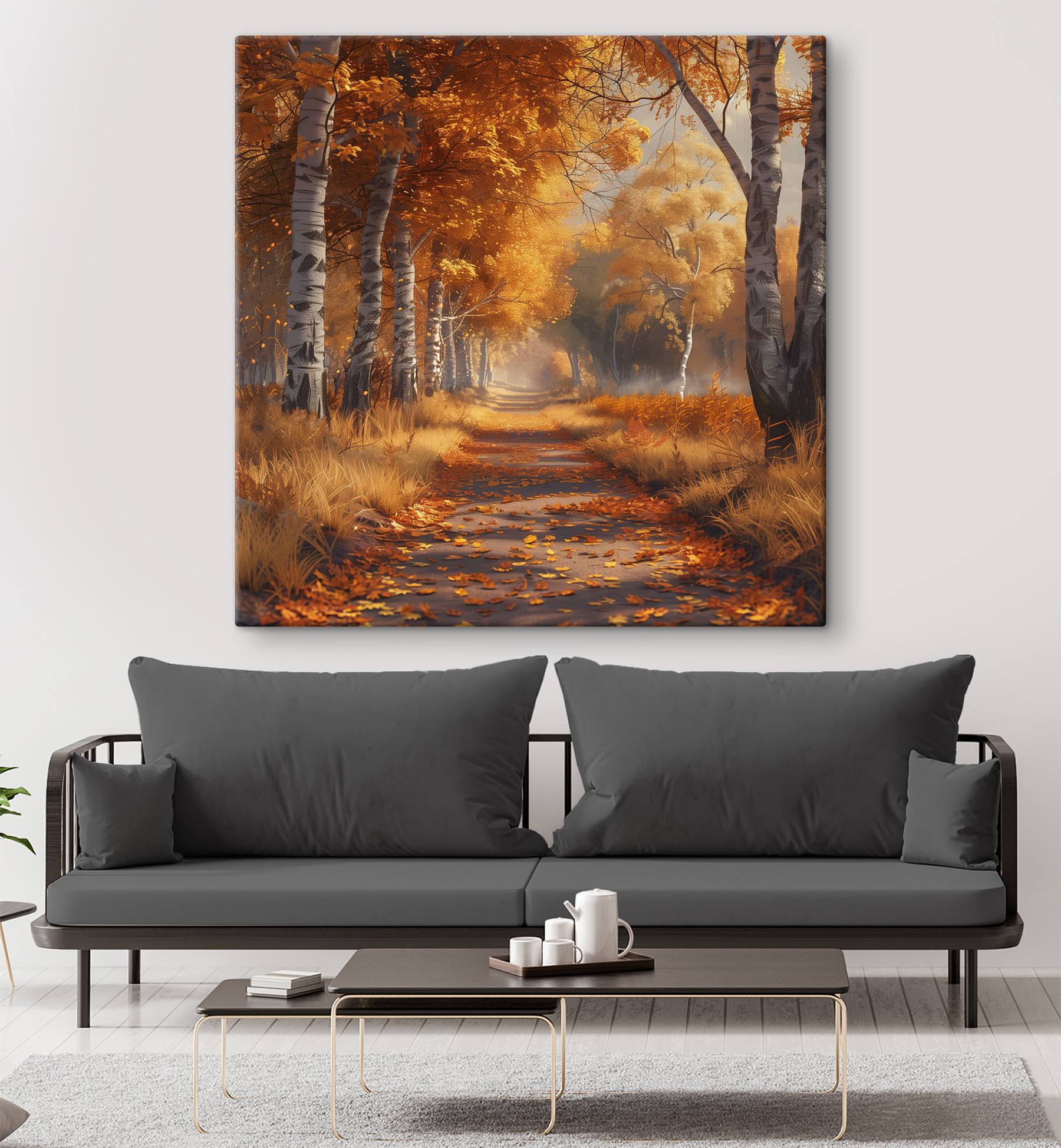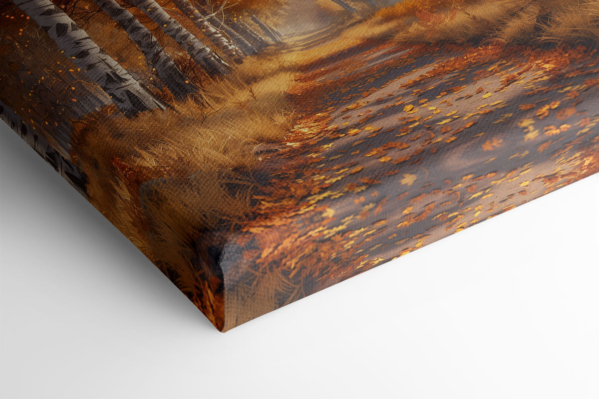 Wandel over een magisch pad met deze prachtige canvasprint met levendige oranje bladeren. Het is alsof je de warmte van de herfst rechtstreeks naar je woonkamer brengt. Stel je voor dat je lekker knus met een kopje thee naar deze schoonheid zit te staren en het zachte gekraak van de bladeren onder je voeten voelt. Het is perfect voor elke ruimte die verlangt naar een vleugje natuur. De manier waarop het licht door de bomen danst geeft je bijna het gevoel alsof je door een sprookjesboek loopt. Dit stuk voegt warmte toe, inspireert tot dagdromen en kan het verlangen naar je volgende buitenavontuur aanwakkeren!