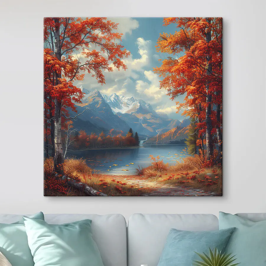 Stel je eens voor dat deze prachtige canvasprint je ruimte opfleurt met een meer in de warme omarming van oranje bladeren en majestueuze bergen. Het is alsof de natuur heeft besloten om zich een beetje te laten zien! Perfect voor die ene muur die wel wat persoonlijkheid kan gebruiken, dit stuk brengt het buitenleven naar binnen. Zie jezelf al koffie drinken, verdwalen in de kleuren of dagdromen over een gezellige wandeling door de herfstbossen. Het is niet zomaar decoratie; het is een stukje sereniteit voor je huis. Bovendien, wie wil er nu geen gespreksonderwerp over een prachtig meer?