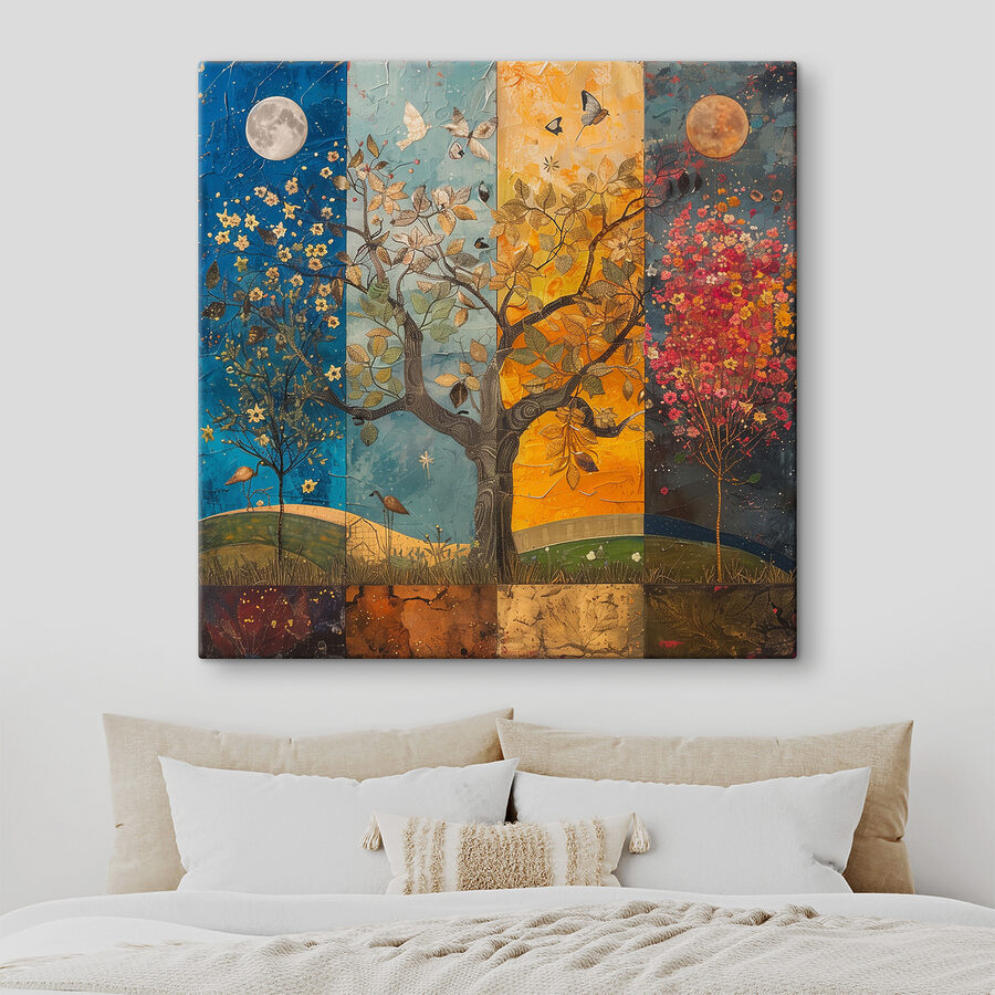 Droom je van een vleugje kleur in je kamer? Bekijk dan deze prachtige canvasprint. Stel je voor: een boom barstensvol kleuren, elke tak vertelt een ander verhaal. Vogels fladderen rond en voegen een vleugje eigenzinnigheid toe. Het is alsof de natuur een feestje geeft op je muur! Perfect om elke kamer op te fleuren – het is niet zomaar een kunstwerk, het is een ervaring. Stel je voor dat je ‘s ochtends aan je koffie nipt, naar deze schoonheid staart en je een beetje meer zen voelt. Het is net alsof je je eigen vrolijke stukje bos thuis hebt.