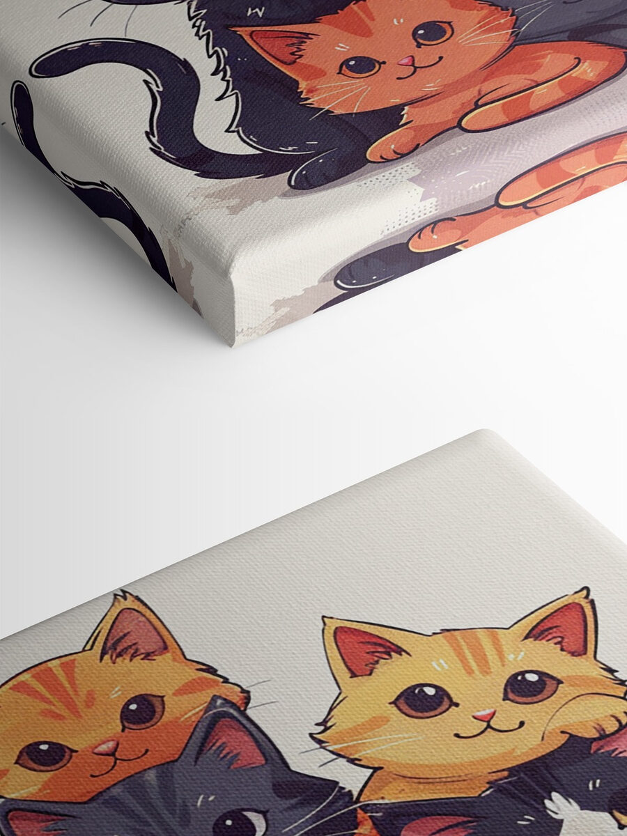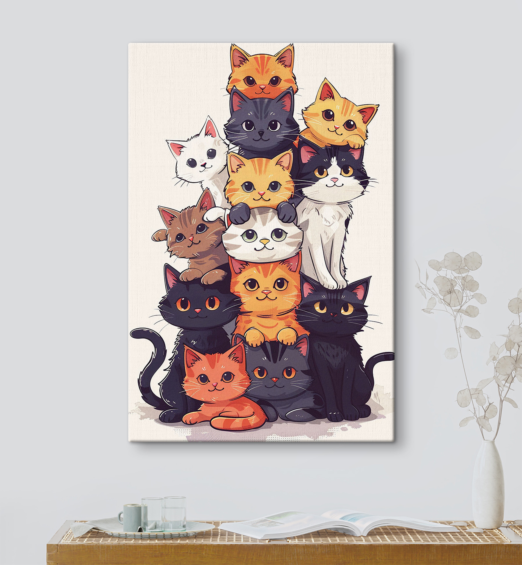Stel je een knus hoekje van je huis voor gevuld met spinnend geluk. Deze canvasprint, met een heerlijke stapel speelse katten, brengt dat warme, donzige gevoel tot leven. Elk poesje, met die schattige grote ogen en brutale uitdrukkingen, lijkt verhalen te fluisteren over kattenkwaad en knuffels. Als je dit kunstwerk aan de muur hangt, verandert elke ruimte in een charmant katachtig wonderland. Het is alsof een stel harige vrienden de wacht houdt en iedereen eraan herinnert dat plezier en gekheid binnen handbereik zijn. Perfect voor kattenliefhebbers of iedereen die behoefte heeft aan een vrolijke vibe!
