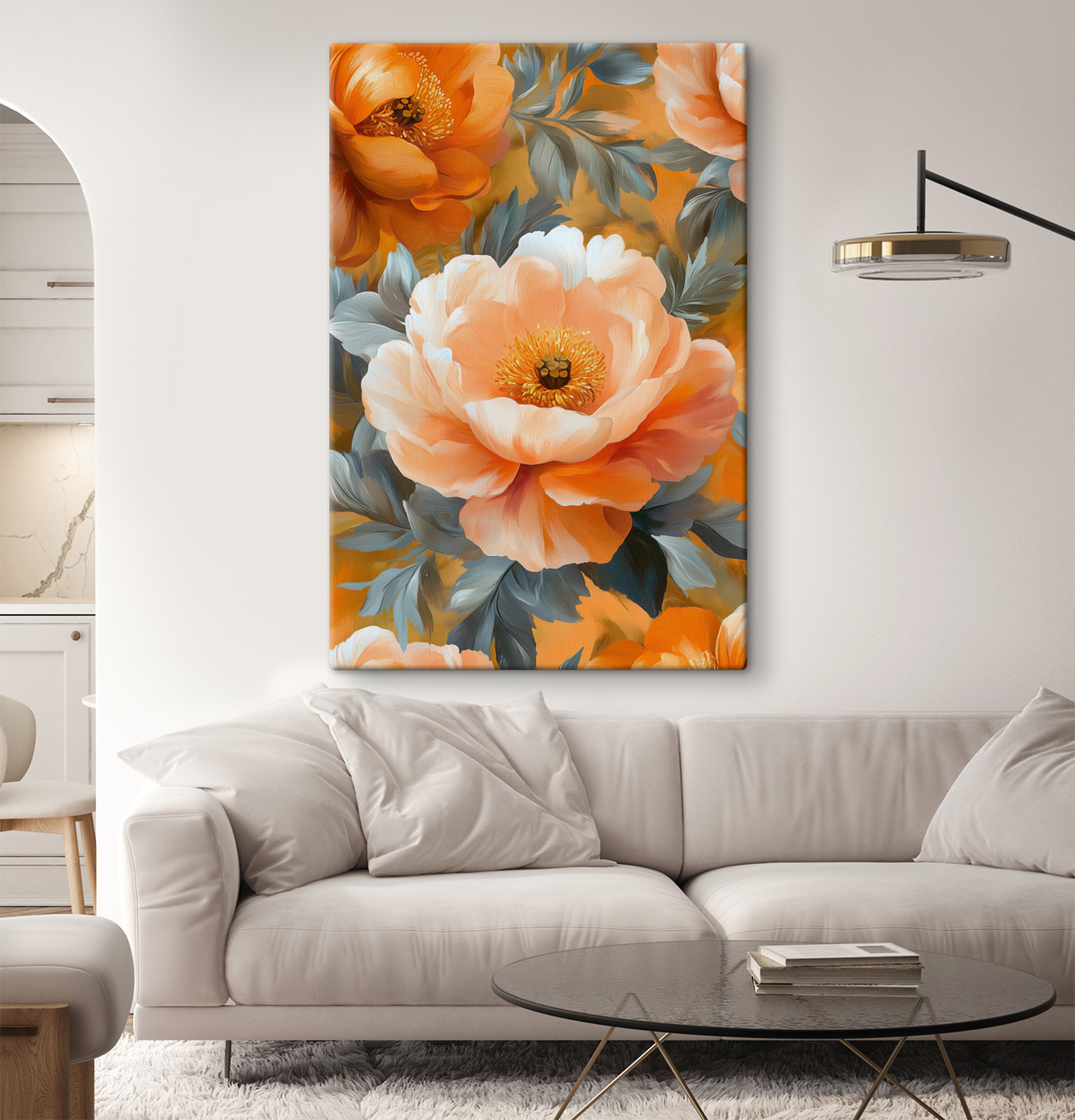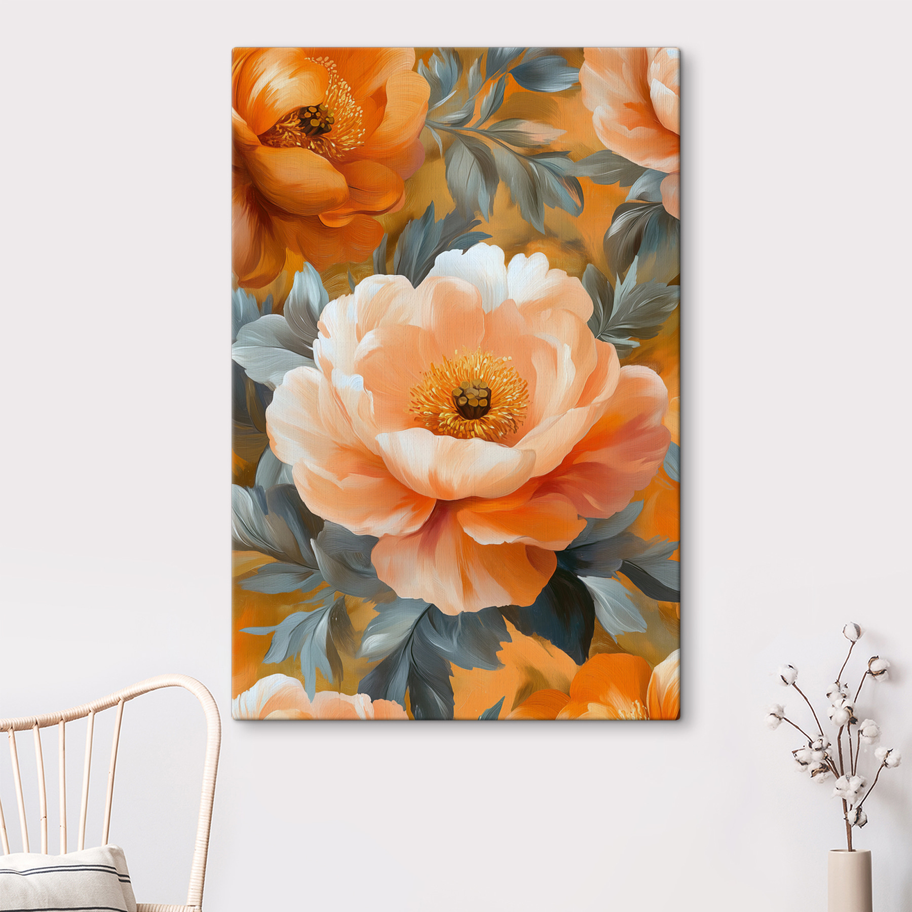 Fleur elke ruimte op met “Bloemen op canvas in levendige perziktinten”. Dit prachtige stuk barst van de levendige bloemen die bijna van het doek af dansen. Het is alsof je een tuin naar binnen haalt, zonder de gieter en de bij die af en toe komt. Stel je voor dat je een kamer binnenloopt en je meteen opgevrolijkt voelt- die vrolijke perzikblaadjes hebben een manier om je geest op te vrolijken. Of het nu een gezellig leeshoekje is of een levendige eethoek, dit kunstwerk nodigt bij elke blik warmte en vreugde uit. Zelfs saaie muren voelen als een verrukking wanneer ze versierd zijn met zulke levendige vibes!
