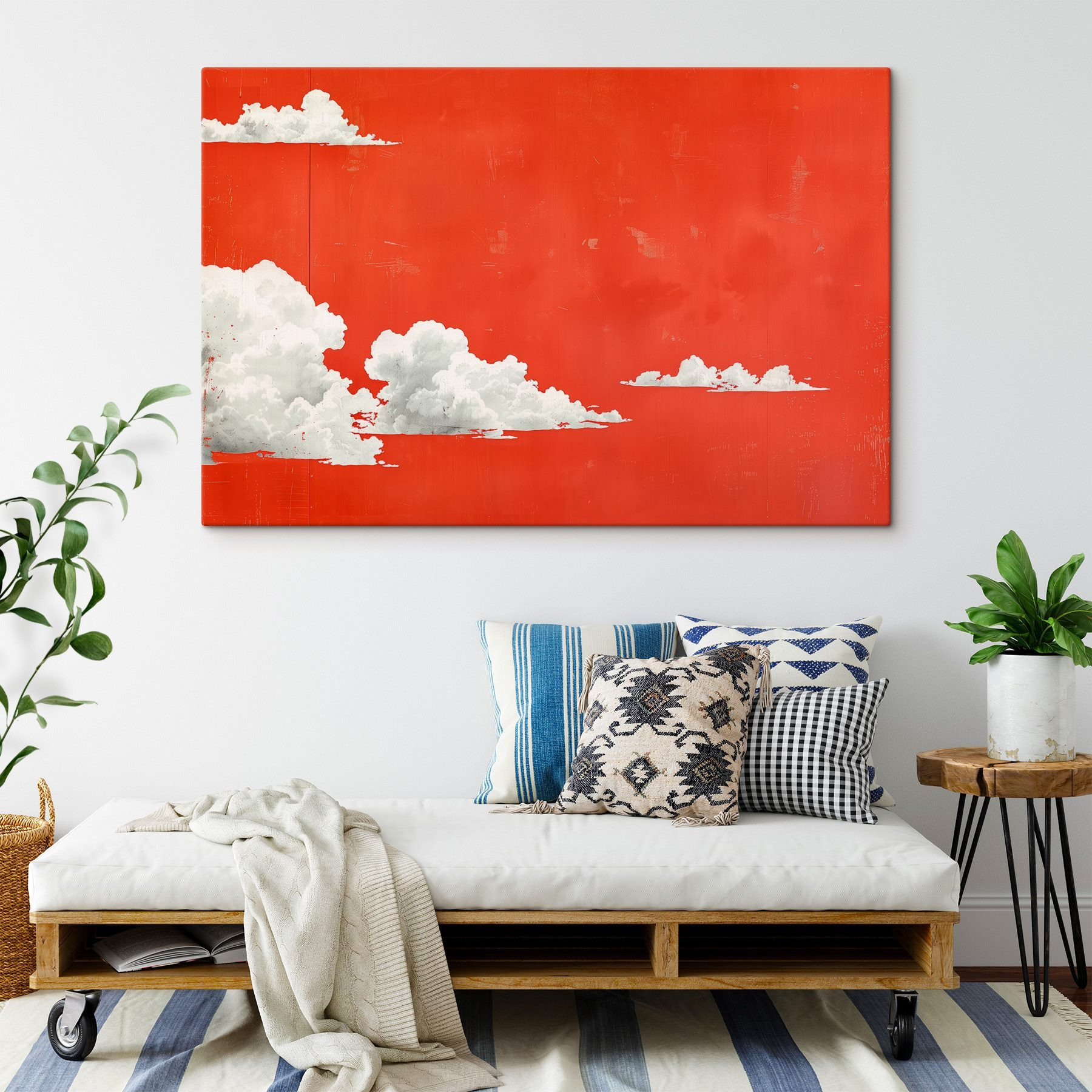 Ooit het gevoel gehad dat wolken kijken een sport voor binnen zou moeten zijn? “Witte wolken op een rode achtergrond” brengt die luie zondagse sfeer naar je kamer. Met zijn rijke rode tint – een knipoog naar passie misschien – laat het witte wolken knallen als speelse suikerspinnen. Dit minimalistische wonder is perfect om elke plek op te fleuren en is meer dan alleen een blikvanger: het creëert een sfeer. Stel je voor dat je wegzakt in een goed boek of gewoon thee drinkt onder dit hemelse uitzicht. Een vleugje eigenzinnigheid aan de muur – zonder zorgen over het weer!