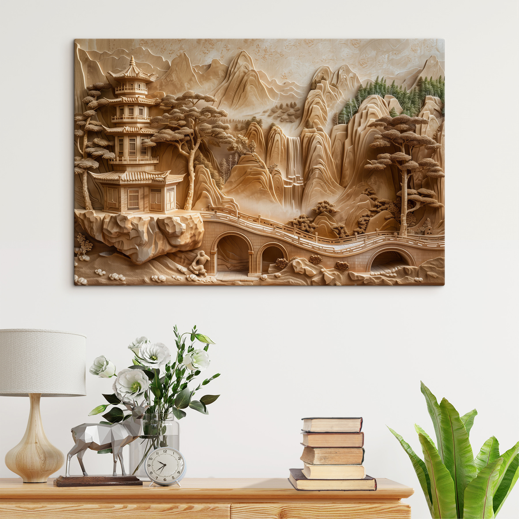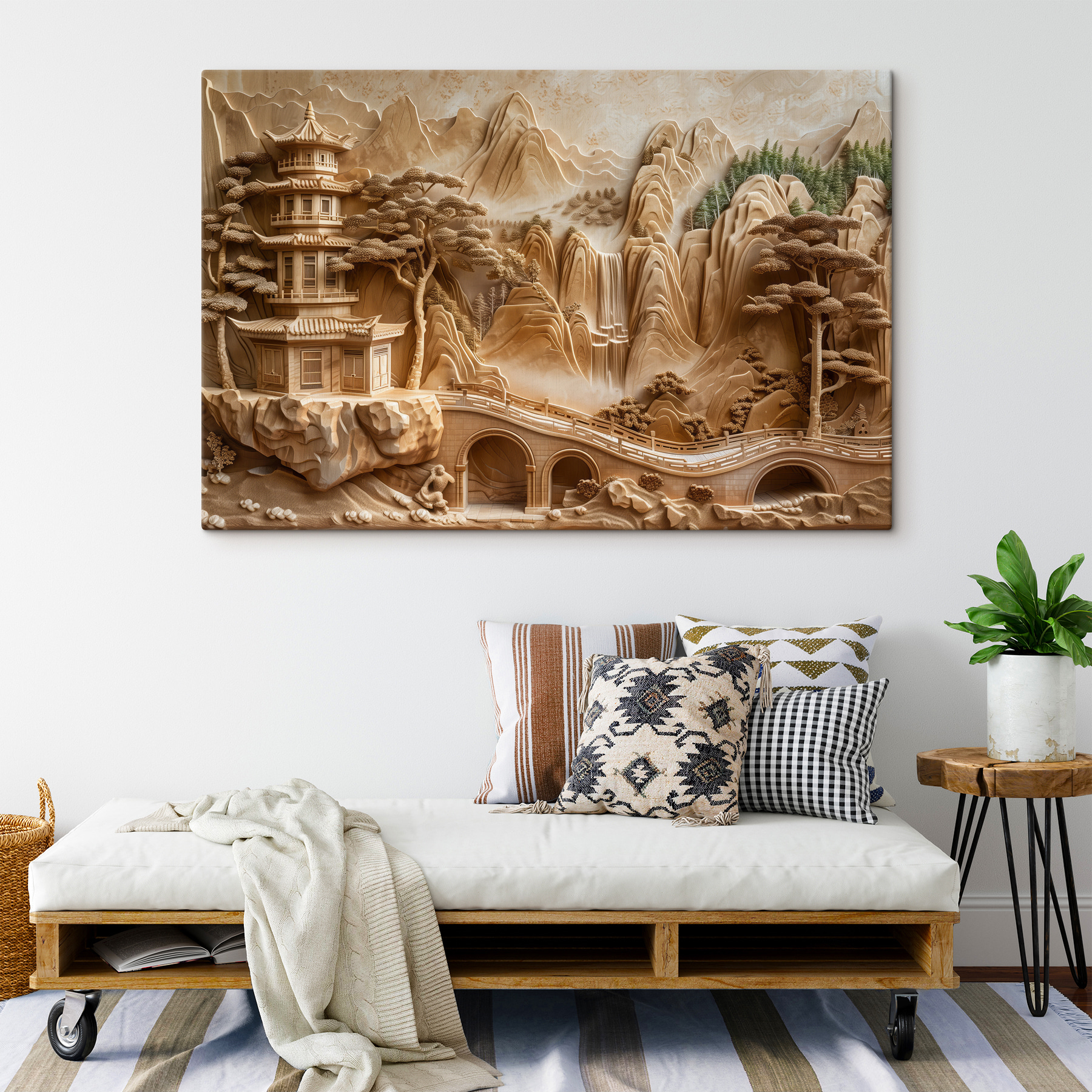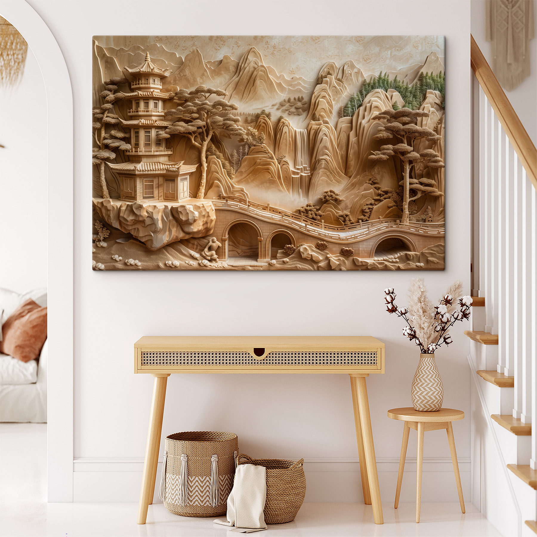 Stap in een serene wereld met deze fascinerende canvasprint met een prachtige brug en een traditioneel gebouw temidden van weelderige, vredige landschappen. Stel je de zachte geluiden van kabbelend water voor terwijl je naar de ingewikkelde details kijkt die dit werk tot leven brengen. Het is alsof je de natuurlijke schoonheid van Japan in huis haalt. Perfect om dagdromen op te wekken of gezellige gesprekken te inspireren, deze kunst nodigt uit tot een gevoel van rust en verwondering. Door het in een woonkamer of werkruimte te plaatsen, verandert de sfeer en wordt elke dag een beetje vrolijker. Of het nu voor je eigen ruimte is of als een attent cadeau, dit canvas voegt dat perfecte vleugje natuur en cultuur toe. Wie zou niet willen ontsnappen naar dit betoverende tafereel?