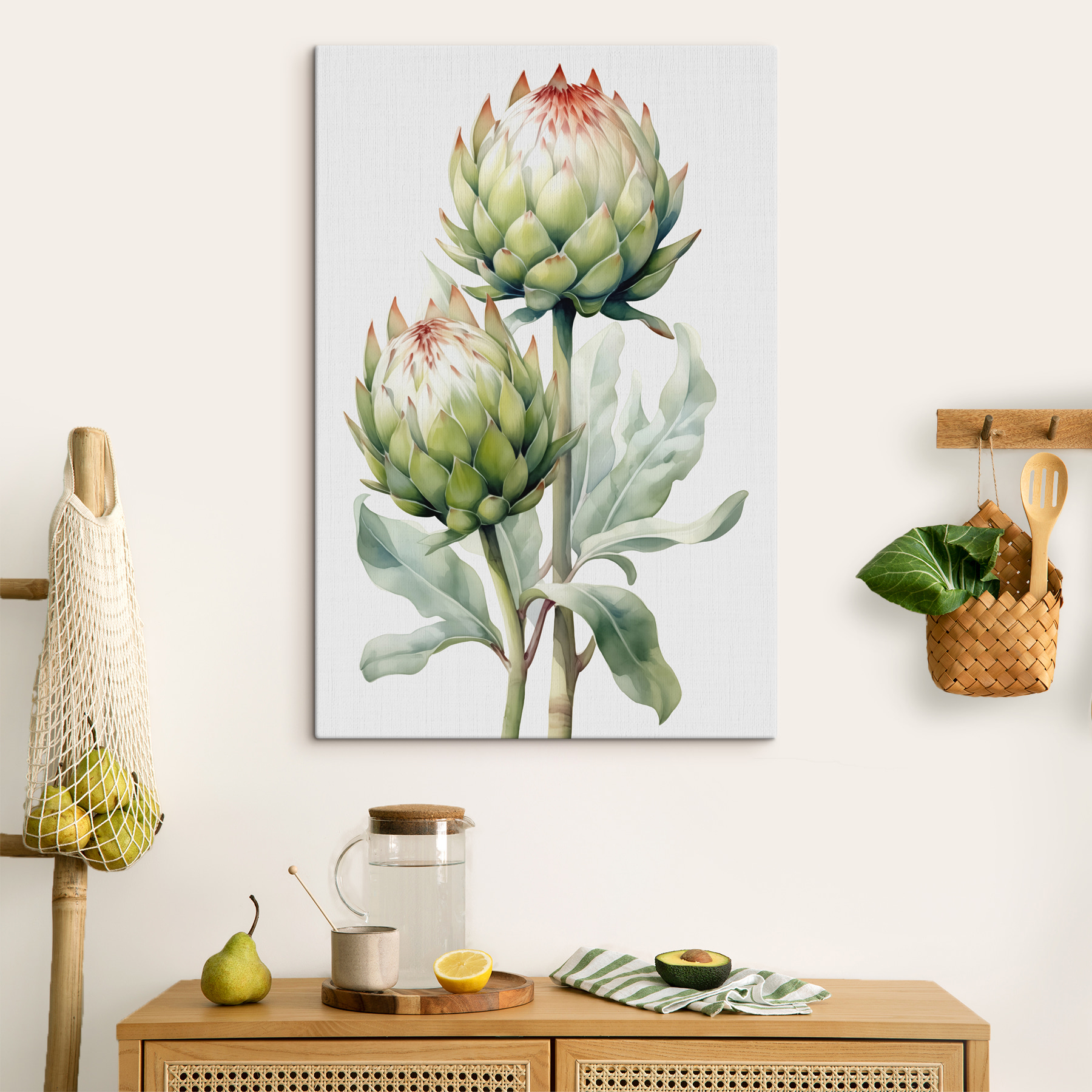 Maak kennis met “Canvas Schilderijen Twin Artichokes Basking in Harmony” – een heerlijke uitbarsting van de natuur die zich een weg naar je hart danst. Stel je deze twee eigenzinnige artisjokken voor die een gezellige babbel hebben in aquarel! Dit werk, met zijn zachtgroene tinten en fluisterende warmte, voegt een vleugje eigenzinnigheid toe aan elke ruimte. Stel je voor dat het in je keuken staat, vrolijk makend en misschien trek gevend in iets lekkers. Het is als een zachte vriend die de kamer moeiteloos opfleurt met de charme van de natuur. Perfect voor wie houdt van een beetje persoonlijkheid en een knipoog naar het onverwachte.