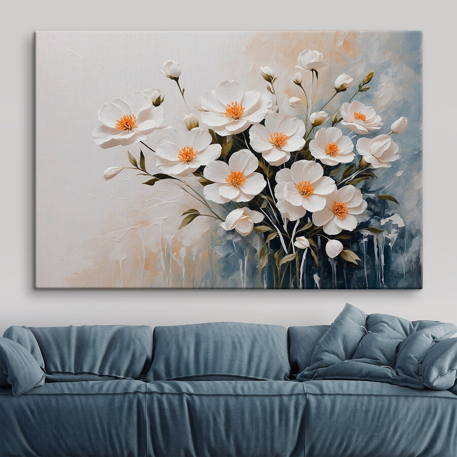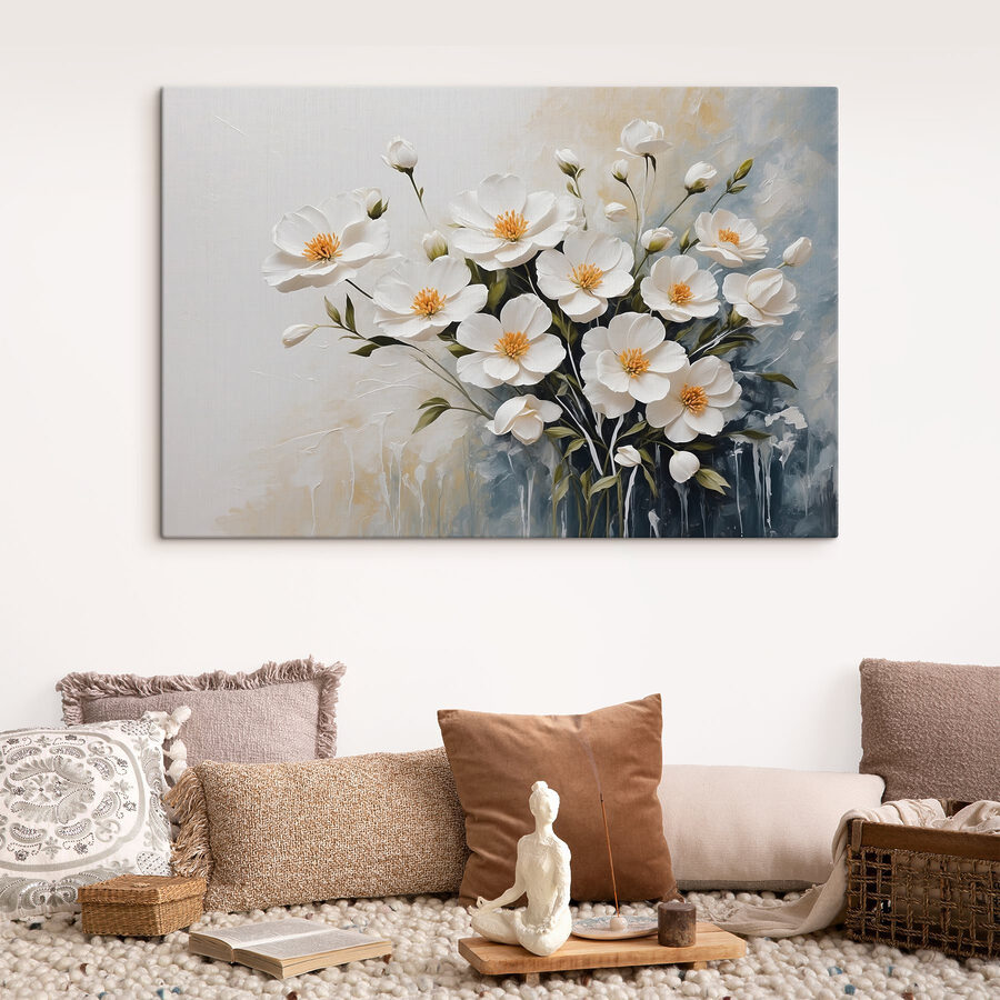 Hier is een afdruk op canvas die elke kamer het hele jaar door een lentegevoel geeft! Stel je witte bloemen voor die zachtjes wiegen in de wind, voor altijd vastgelegd op dit prachtige schilderij. Het is net alsof je een stukje natuur aan de muur hebt hangen – water geven is niet nodig! Perfect voor de dagen dat je een opkikkertje nodig hebt; het brengt een gevoel van rust en frisheid. Of het nu in een woonkamer of slaapkamer hangt, dit stuk voegt een vleugje elegantie en rust toe. Het is als een frisse wind door je kamer!