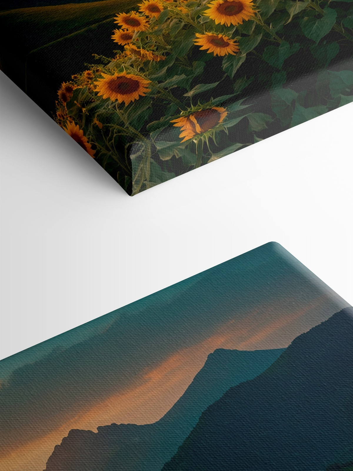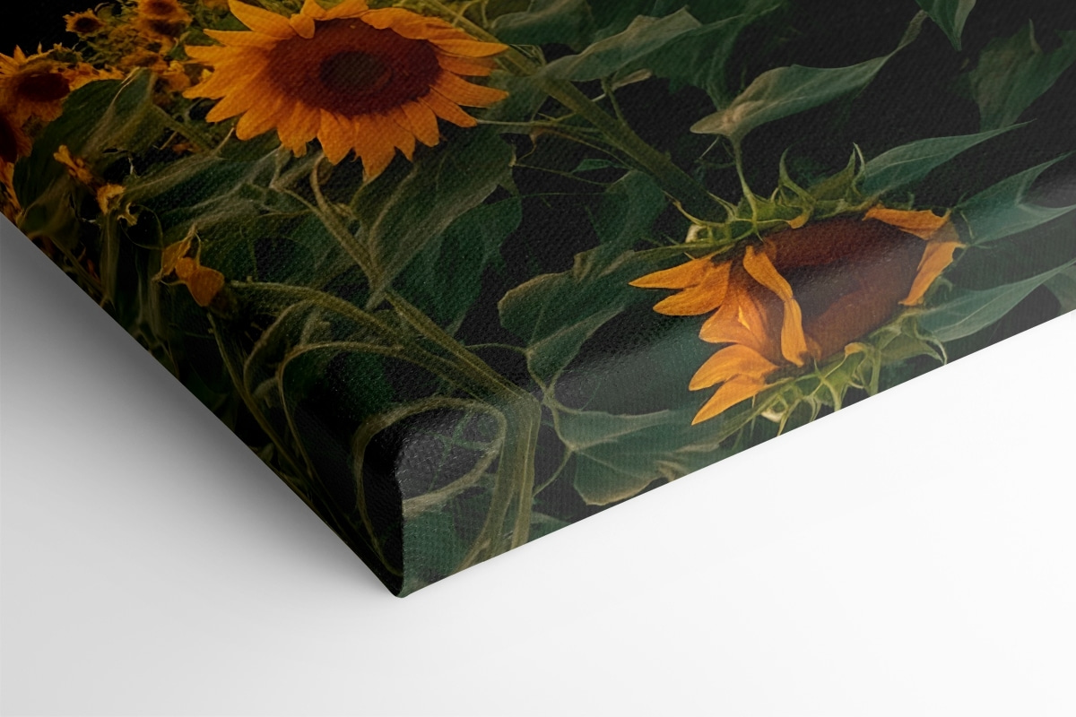Transformeer je ruimte met deze levendige canvasprint met een veld zonnebloemen tegen majestueuze bergen. Stel je de warmte voor van een zomerse zonsondergang die het landschap overspoelt en een zachte gloed geeft aan elke vrolijke bloem. Het is alsof je een stukje natuur aan je muur hebt hangen! Perfect voor een gezellige woonkamer of een vrolijke keuken, dit stuk nodigt uit tot kalmte en zonnige gedachten. Vrienden zouden je zelfs kunnen vragen of je begonnen bent met tuinieren! Wees niet verbaasd als dit het centrale punt wordt dat elke kamer opfleurt, waardoor elke dag net iets specialer aanvoelt.