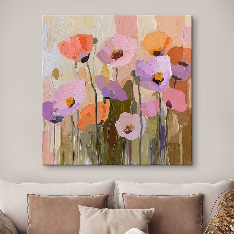Stel je voor dat je een kamer binnenloopt en begroet wordt door een veld vol levendige bloemen – gewoon op je muur! Deze canvasprint geeft elke ruimte een vleugje kleur en verandert saaie muren in een bloeiend paradijs. De penseelstreken zijn zo levendig dat je zou zweren dat je de bloemblaadjes kunt ruiken. Perfect voor iedereen die een beetje opgevrolijkt moet worden of zijn decoratie een beetje wil verbeteren. Het is alsof je een tuin hebt die nooit verwelkt, zonder dat je groene vingers nodig hebt. Hang het gewoon op, leun achterover en laat de bloemenmagie zich ontvouwen.