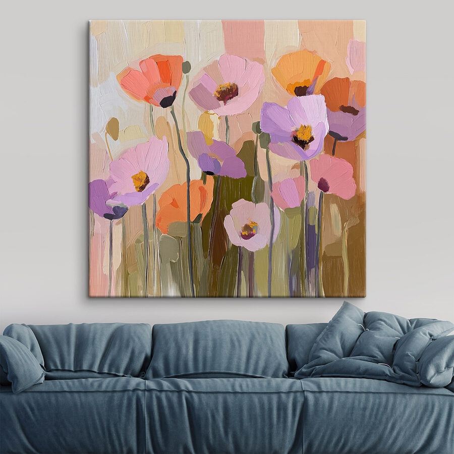 Stel je voor dat je een kamer binnenloopt en begroet wordt door een veld vol levendige bloemen – gewoon op je muur! Deze canvasprint geeft elke ruimte een vleugje kleur en verandert saaie muren in een bloeiend paradijs. De penseelstreken zijn zo levendig dat je zou zweren dat je de bloemblaadjes kunt ruiken. Perfect voor iedereen die een beetje opgevrolijkt moet worden of zijn decoratie een beetje wil verbeteren. Het is alsof je een tuin hebt die nooit verwelkt, zonder dat je groene vingers nodig hebt. Hang het gewoon op, leun achterover en laat de bloemenmagie zich ontvouwen.