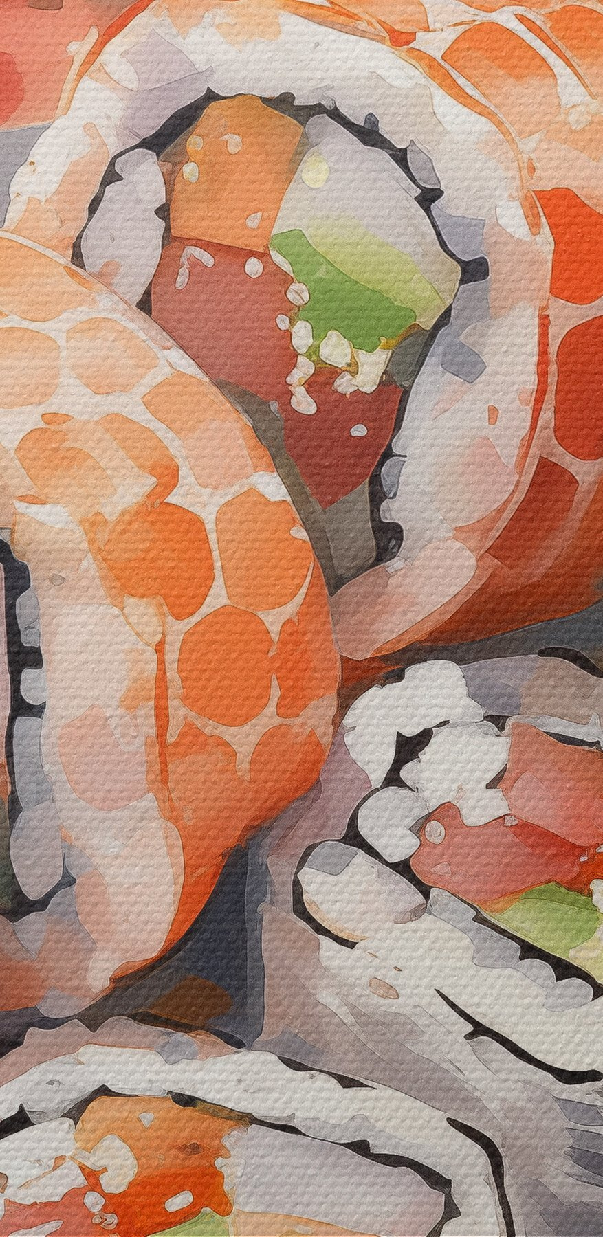 Stel je voor: je loopt je keuken binnen en bam, daar is het, een canvas dat bijna fluistert “sushi anyone?”. De canvasafdruk “Plate of Sushi and Sauce” voelt als een kleine Zen-tuin aan je muur. Die delicate rolletjes zien er bijna te mooi uit om op te eten, maar doen ze je niet verlangen naar een avondje sushi? De subtiliteit van de natuur gemengd met ieders favoriete hapklare lekkernij – het is alsof je een verfijnd etentje hebt, zonder het schoonmaken. Dit kunstwerk is perfect om een vleugje smaak toe te voegen aan elke ruimte en zal zeker heerlijke gesprekken op gang brengen.