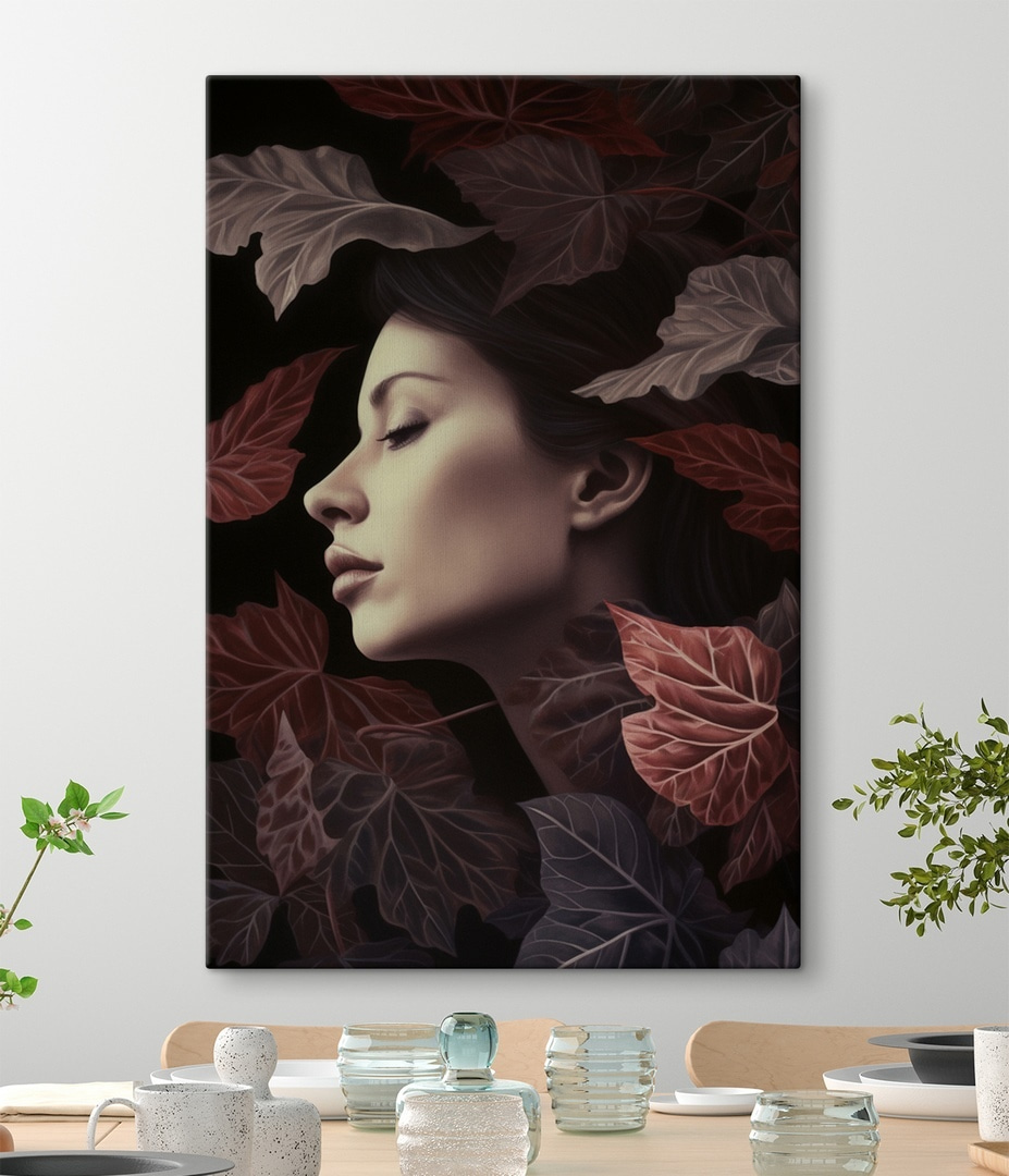 Breng een vleugje herfst in je huis met “Afdrukken op canvas Sereniteit te midden van herfstbladeren”. Dit stuk legt een rustig moment vast, waar de natuur en introspectie elkaar ontmoeten. Stel je voor dat je een kamer binnenloopt en begroet wordt door de warme tinten van roest en dieprood, die je moeiteloos omarmen. De serene uitdrukking van de figuur versmelt harmonieus met de ingewikkelde bladeren en roept zoete dagdromen op van frisse wandelingen in het park. Perfect voor een rustig hoekje of als een prachtig middelpunt, dit doek nodigt uit tot gesprek en bewondering. Wie wil er nu geen kunstwerk dat verhalen van vredige herfstdagen vertelt? Voel die zachte zucht van de herfst elke keer als je ernaar kijkt – zoet, sereen en gewoon een beetje magisch.