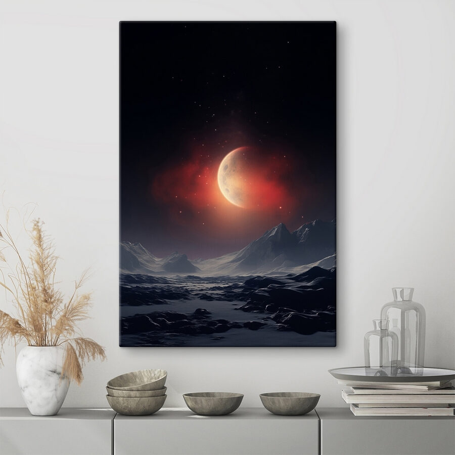 Transformeer je kamer met de betoverende “Canvas Schilderijen Moon in the Sky Over Mountains”. Dit kunstwerk toont een spookachtig mooie maan die opdoemt boven majestueuze bergtoppen en betovert elke muur. Stel je voor dat je lekker wegkruipt met een boek, de zachte gloed van het maanlicht verlicht je knusse hoekje. Het is niet zomaar een scène, het is een moment, een ontsnapping. Perfect voor dromers en sterrenkijkers, dit canvas voegt een vleugje hemelse charme toe die gesprekken aanwakkert. Wie wil er nou niet naar de maan kijken op een dinsdagavond? Laat deze print verhalen over verre sterrenstelsels en serene bergnachten je huis binnen fluisteren. Perfect voor natuurliefhebbers of iedereen die een vleugje magie aan de muur wil toevoegen.