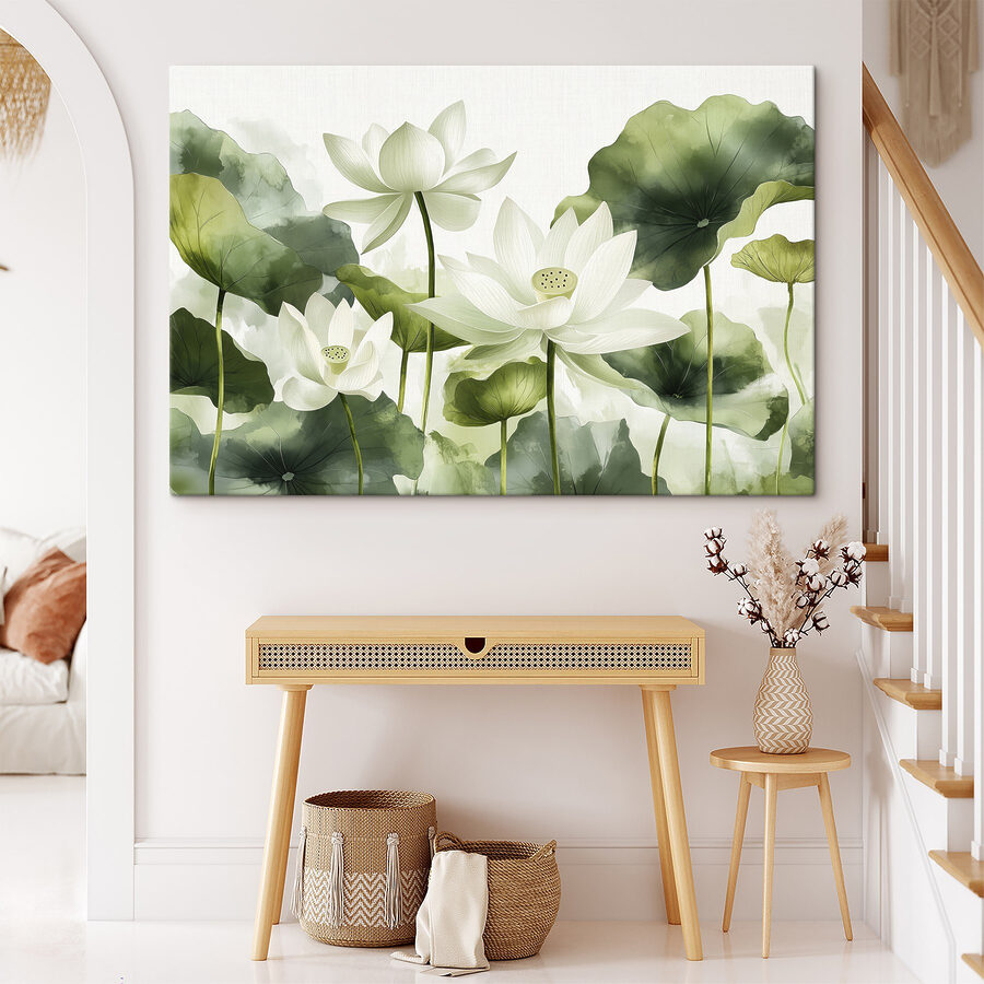 Stel je dit eens voor: een serene tros witte bloemen, vermengd met weelderige groene bladeren, allemaal bespat in dromerige waterverf. Het is alsof je een frisse ochtendbries inademt elke keer als je er naar kijkt. Perfect om elke kale muur om te toveren in een rustgevend toevluchtsoord. En niet alleen voor botanisch ingestelde mensen: het is ideaal voor iedereen die een vleugje elegantie uit de natuur in huis wil halen. Onverwacht pluspunt? Deze bloemen verwelken nooit! Zet hem in een woonkamer of een gezellig hoekje en laat hem zijn vredige magie doen. Prachtig, nietwaar?