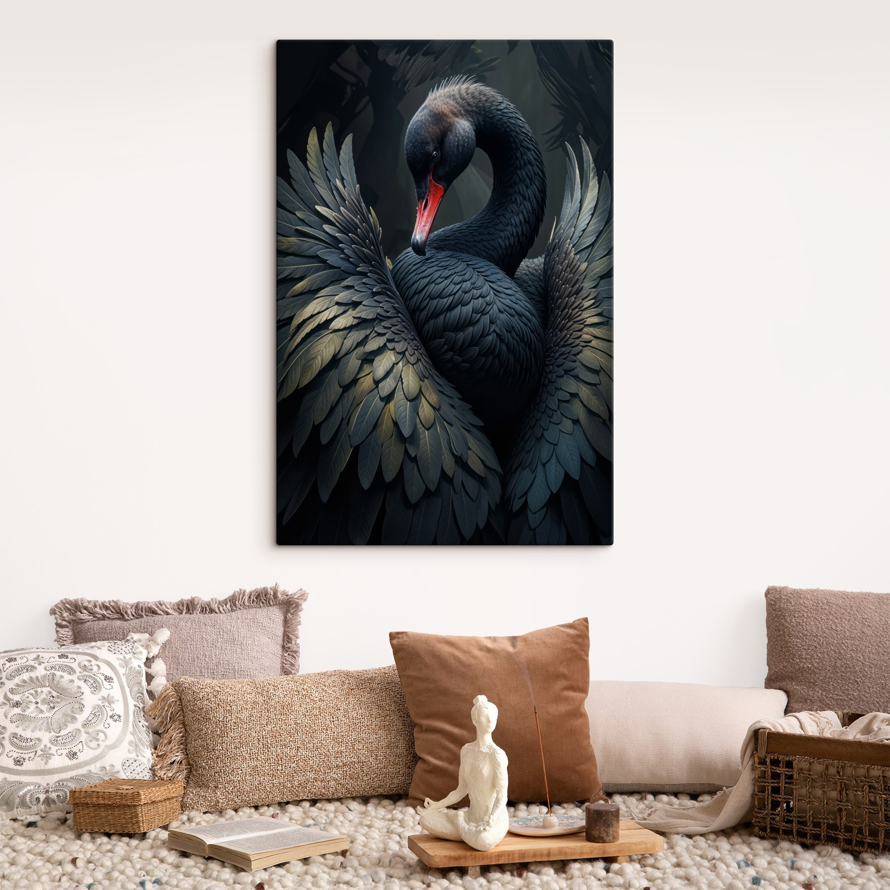 Transformeer je ruimte met de prachtige “Canvas Schilderijen Zwarte Zwaan met Rode Snavel”. Dit stuk is niet zomaar een decoratie; het is een statement. Stel je voor: een prachtige zwarte zwaan met een rode snavel, sierlijk poserend tussen bladeren die tot leven lijken te komen. Het is alsof hij je uitnodigt voor een gesprek over de elegantie van de natuur.