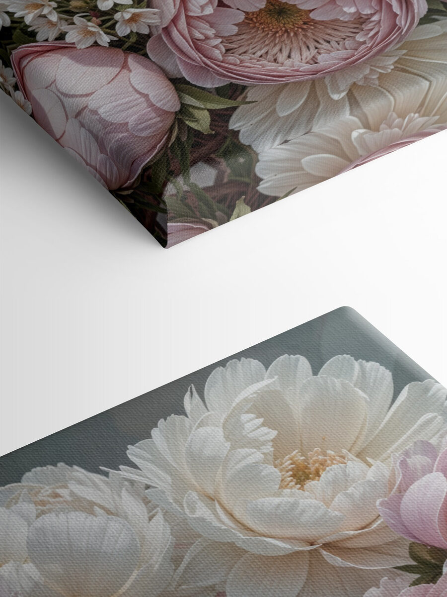 Stel je bloeiende bloemen voor, direct aan je muur! Deze “Canvas Print Groep bloemen in een boeket” is als een frisse lentebries, zonder dat je ze water hoeft te geven. Die zachte roze en witte tinten kunnen zelfs de saaiste maandag opfleuren. Stel je voor dat het boven een gezellige leeshoek hangt of een etentje opluistert. Het heeft die “wow”-factor, die uitnodigt tot glimlachen en complimenten van gasten (en misschien ook een beetje afgunst). Elke blik geeft een beetje warmte en vrolijkheid, als een zachte knuffel van de natuur zelf. Perfect voor iedereen die een vleugje bloemenvreugde wil toevoegen!