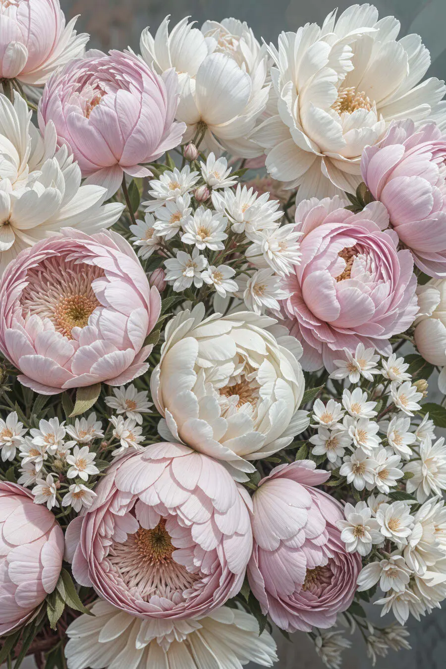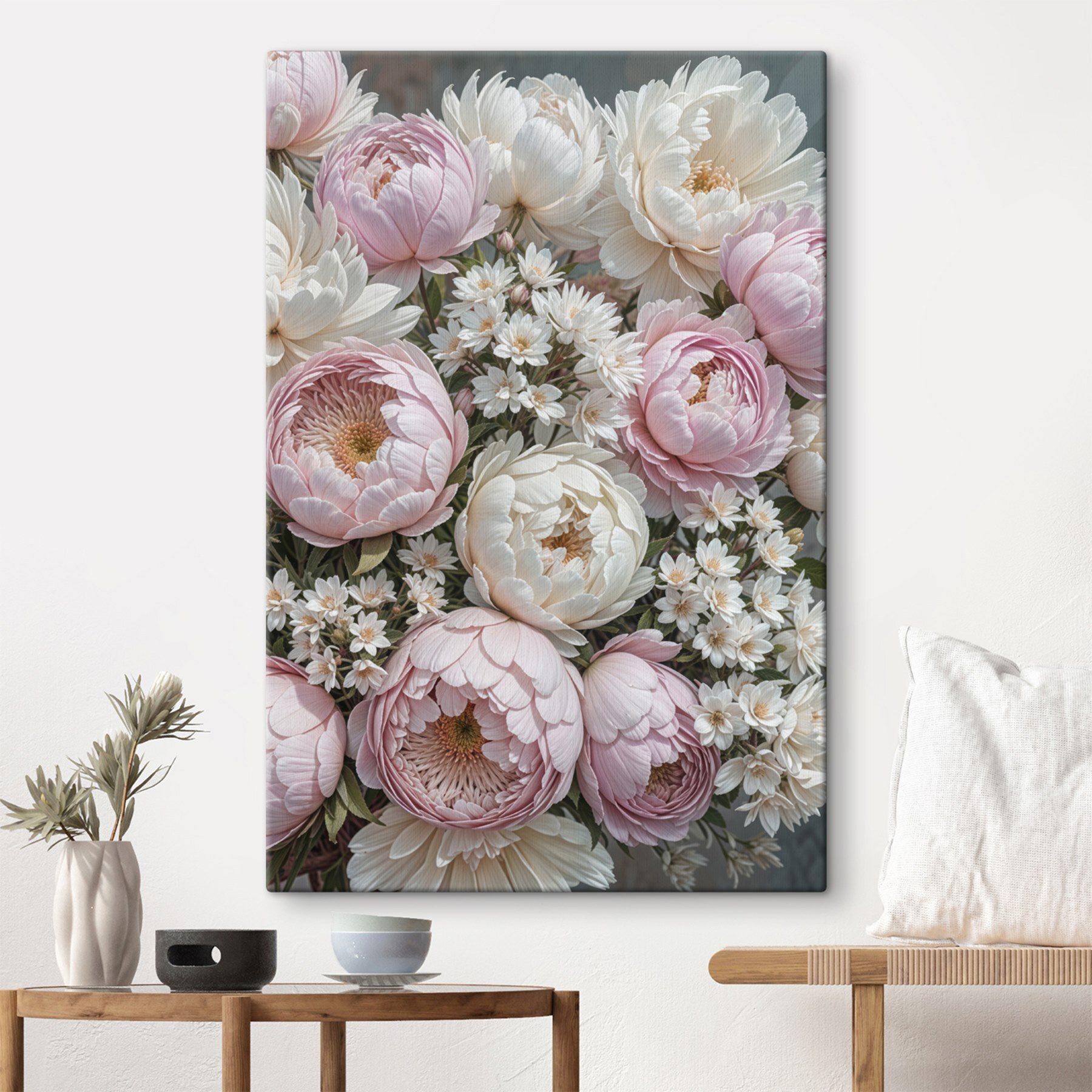 Stel je bloeiende bloemen voor, direct aan je muur! Deze “Canvas Print Groep bloemen in een boeket” is als een frisse lentebries, zonder dat je ze water hoeft te geven. Die zachte roze en witte tinten kunnen zelfs de saaiste maandag opfleuren. Stel je voor dat het boven een gezellige leeshoek hangt of een etentje opluistert. Het heeft die “wow”-factor, die uitnodigt tot glimlachen en complimenten van gasten (en misschien ook een beetje afgunst). Elke blik geeft een beetje warmte en vrolijkheid, als een zachte knuffel van de natuur zelf. Perfect voor iedereen die een vleugje bloemenvreugde wil toevoegen!