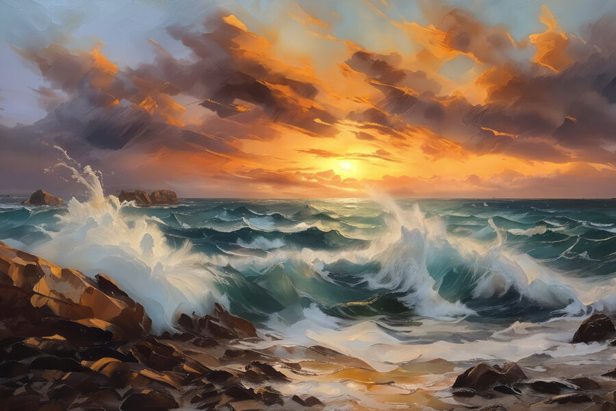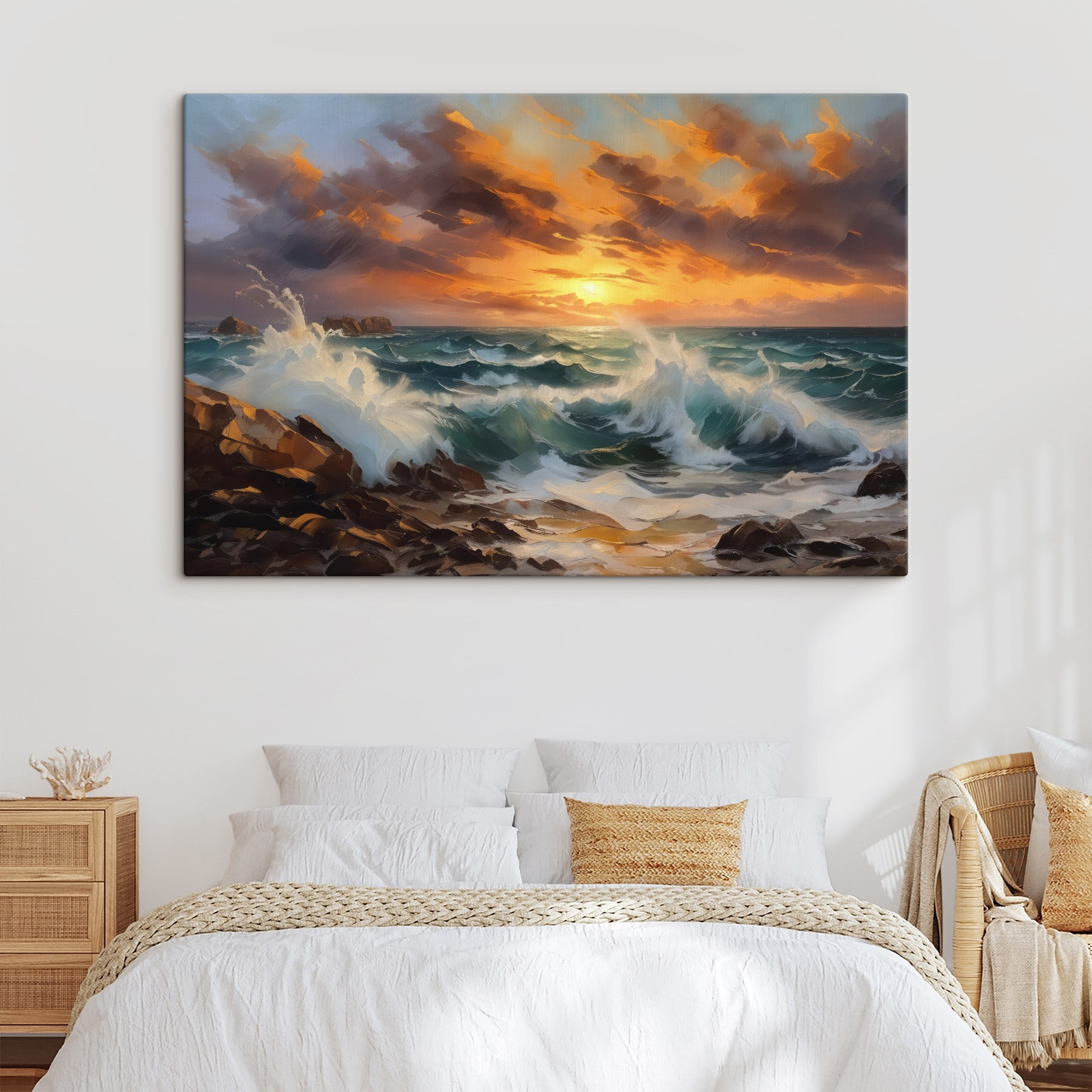 Duik in de kalmerende chaos van “Canvas Schilderijen Waves Crashing on a Rocky Beach”. Dit prachtige stuk vangt de rauwe kracht van de oceaan, waar de golven als een applaus van de natuur tegen stevige rotsen slaan, en dat alles onder een hemel geschilderd met de warme tinten van zonsondergang. Stel je voor dat je ernaar staart terwijl je van je ochtendkoffie nipt of tot rust komt na een lange dag. De levendige blauw- en bruintinten nodigen uit tot rust en brengen je naar een oase aan het strand. Het is het soort kunst dat een ruimte levendig maakt, alsof de zeebries je naam fluistert. Perfect voor natuurliefhebbers of iedereen die behoefte heeft aan een zachte herinnering aan de schoonheid overal om zich heen.