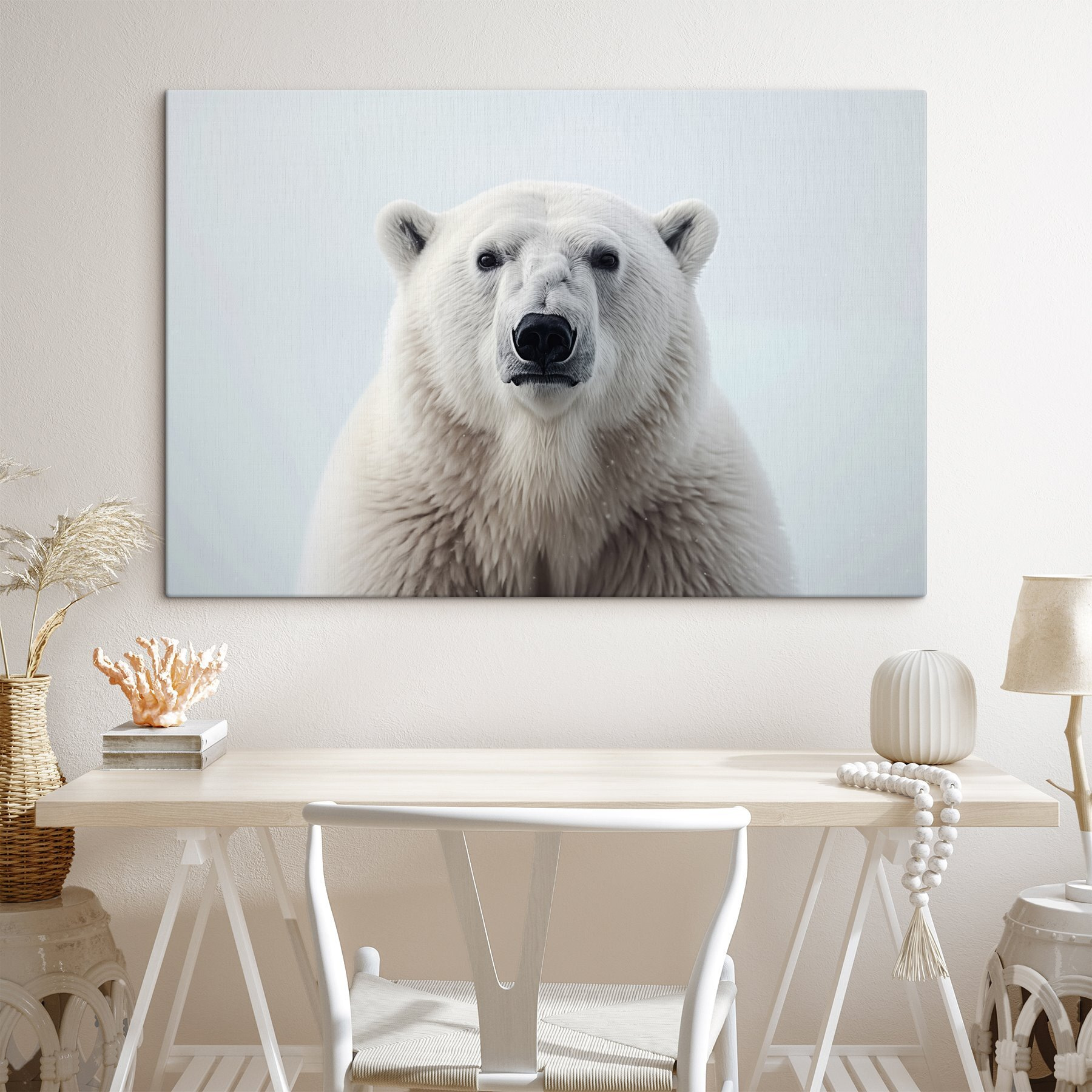 Stel je dit eens voor: een ijsbeer die je zachtjes aankijkt vanaf je muur, met een uitdrukking die op de een of andere manier een balans vindt tussen nieuwsgierigheid en kalmte. Het is alsof hij stiekem je keuze van snacks beoordeelt, maar dan op de liefste manier! Deze canvasprint is meer dan alleen decor; het is een conversatiestarter. Plaats hem in je woonkamer en voel de kilte van de Noordpool smelten in warmte. Perfect voor dierenliefhebbers of iedereen die zijn ruimte een vleugje wilde majesteit wil geven. Wie wist dat een ijsbeer een kamer zo gezellig kon maken?