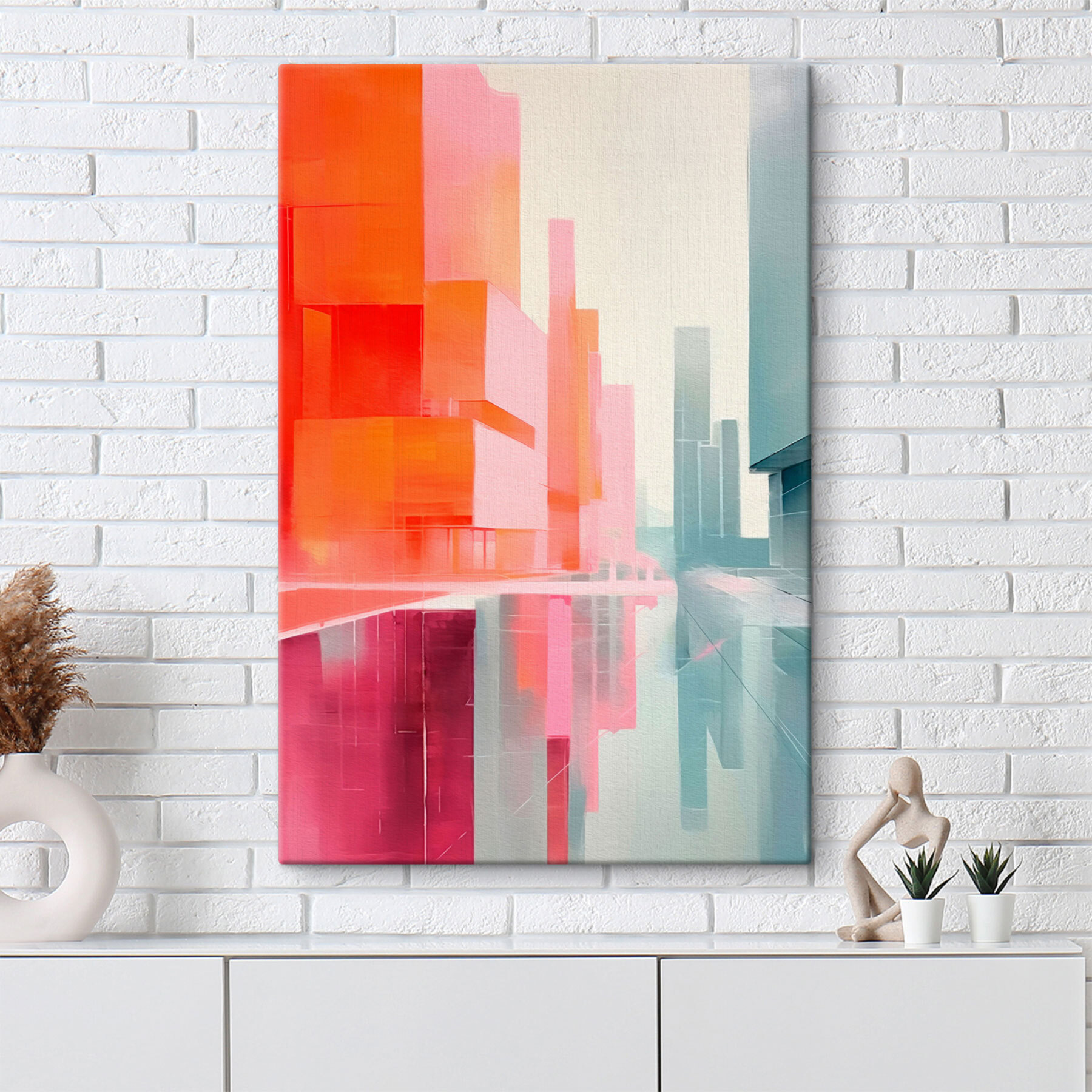 Fleur je muren op met deze prachtige canvasprint met kleurrijke gebouwen in een stad. Het is net een vleugje vreugde in je woonkamer! Stel je voor dat je na een lange dag thuiskomt en begroet wordt door deze levendige kleuren die een gevoel van avontuur oproepen. Het abstracte ontwerp voegt een modern tintje toe, waardoor het perfect is voor elke ruimte – of het nu een gezellig appartement of een druk kantoor is. En misschien inspireert het wel tot dagdromen over stedentrips. Wie weet? Misschien plan je je volgende stedelijke avontuur wel op je bank!
