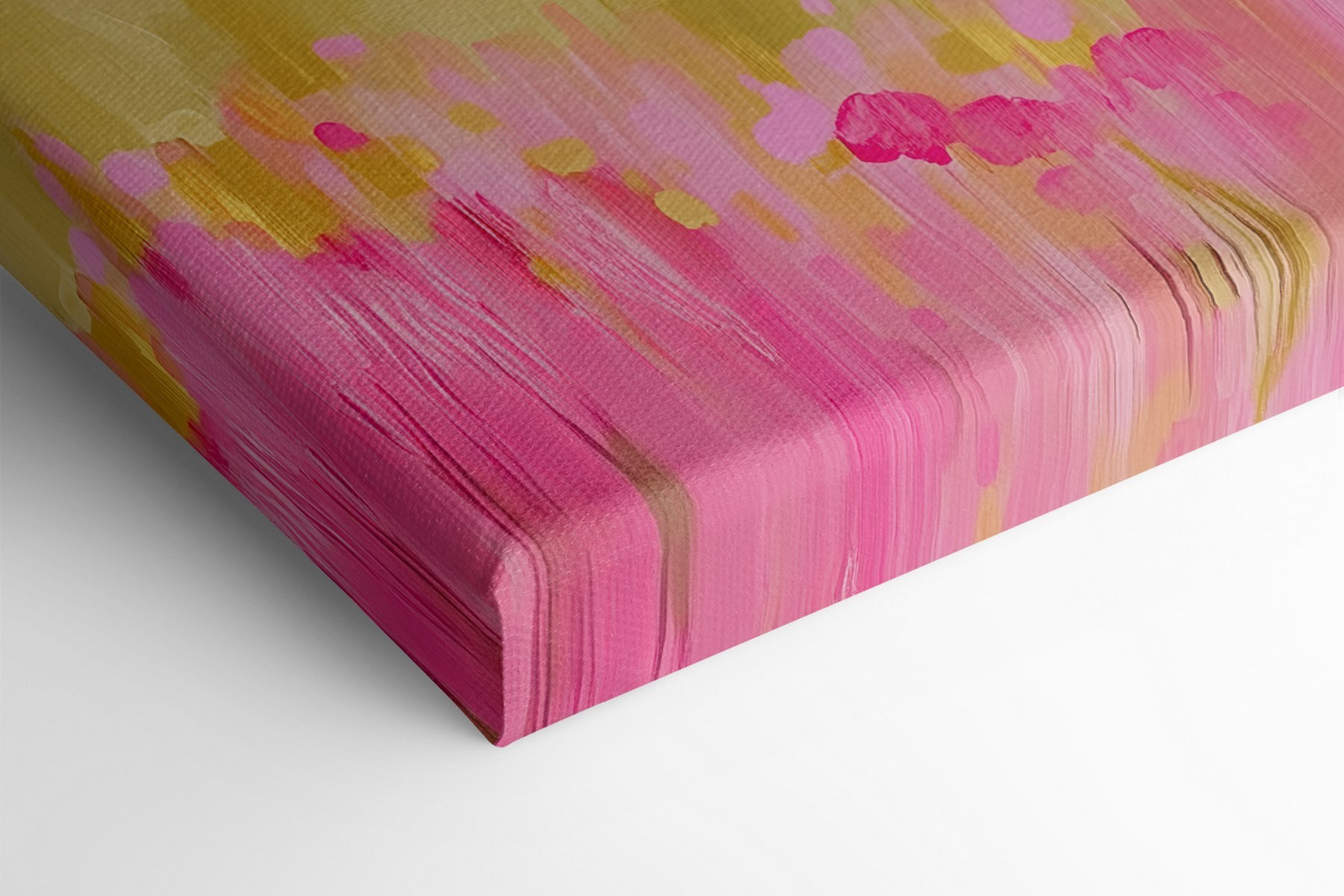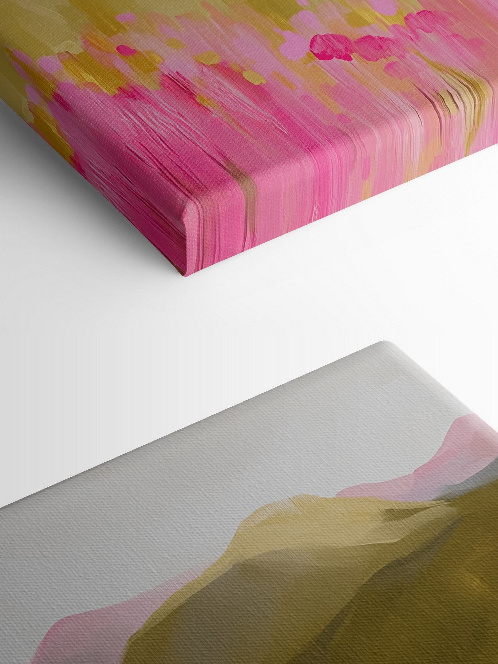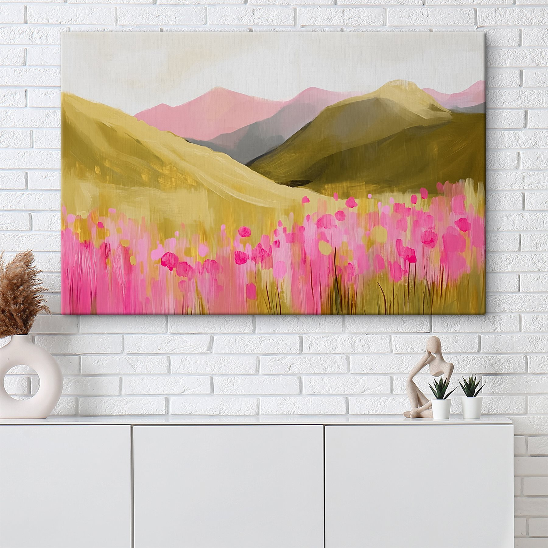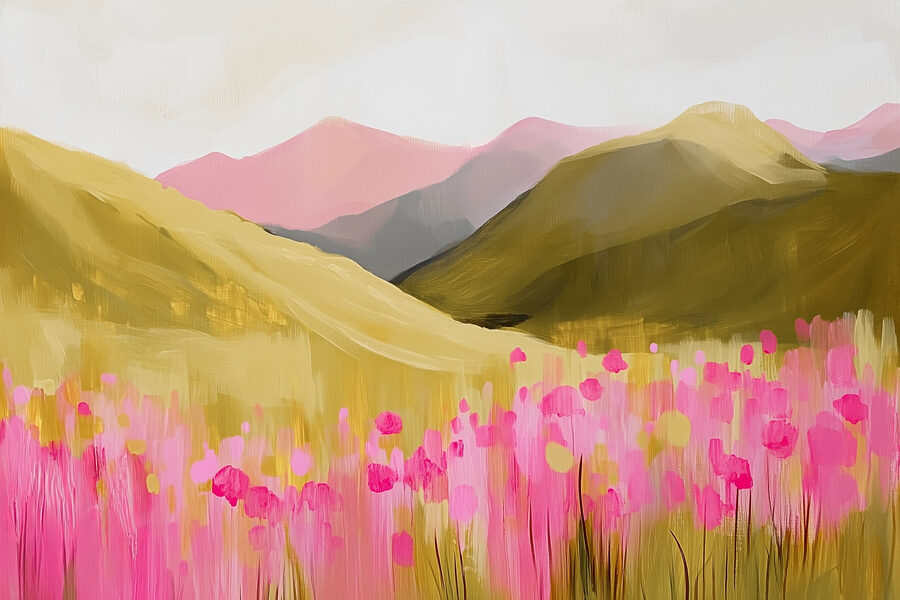 Stel je voor dat je een kamer binnenstapt en het gevoel hebt dat je net in een zonovergoten veld met roze bloemen bent beland – zonder de hooikoorts! Deze canvasprint legt een sereen en dromerig landschap vast, waarin zachte roze tinten worden gecombineerd met zachte aardetinten. Het is als een frisse wind op je muren, perfect voor diegenen die hunkeren naar een vleugje natuur zonder het comfort van hun knusse bank te verlaten. Ideaal om een vleugje kleur en een snufje rust toe te voegen aan elke ruimte, het is een kunstwerk dat “ontspan en geniet” fluistert.