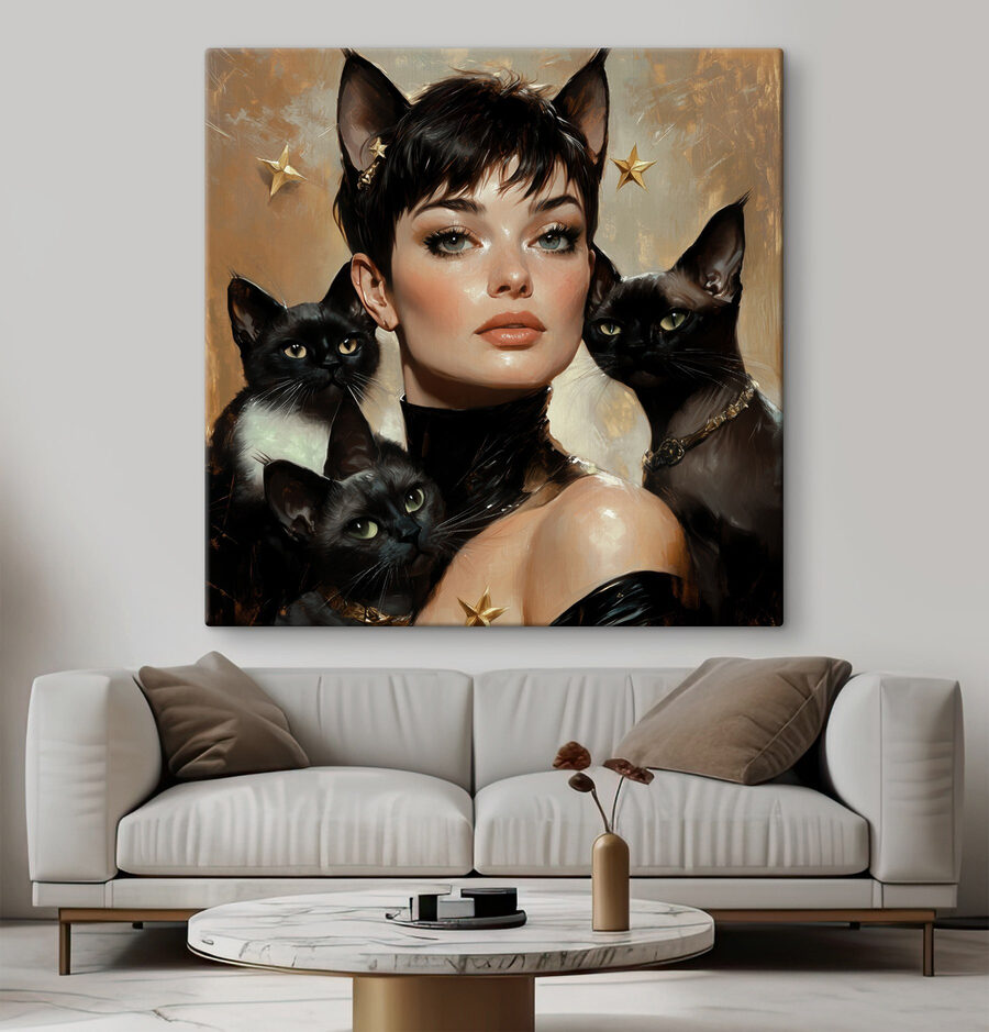 Stel je een wereld voor waarin katten de lakens uitdelen, of in ieder geval je muren! Deze fascinerende canvasprint “Woman with Cats Around Her Neck” is perfect voor iedereen die houdt van een beetje eigenzinnigheid in zijn interieur. Stel je voor: je gasten komen binnen en zien meteen de betoverende ogen van de katten, die je bijna uitdagen om hun katachtige wijsheid in twijfel te trekken. Het is alsof elke kat een geheim te delen heeft en verhalen fluistert over avonturen en gezellige dutjes. Dit stuk brengt warmte, charme en een vleugje mysterie in elke kamer – een echte gespreksstarter met een vleugje spinnen.