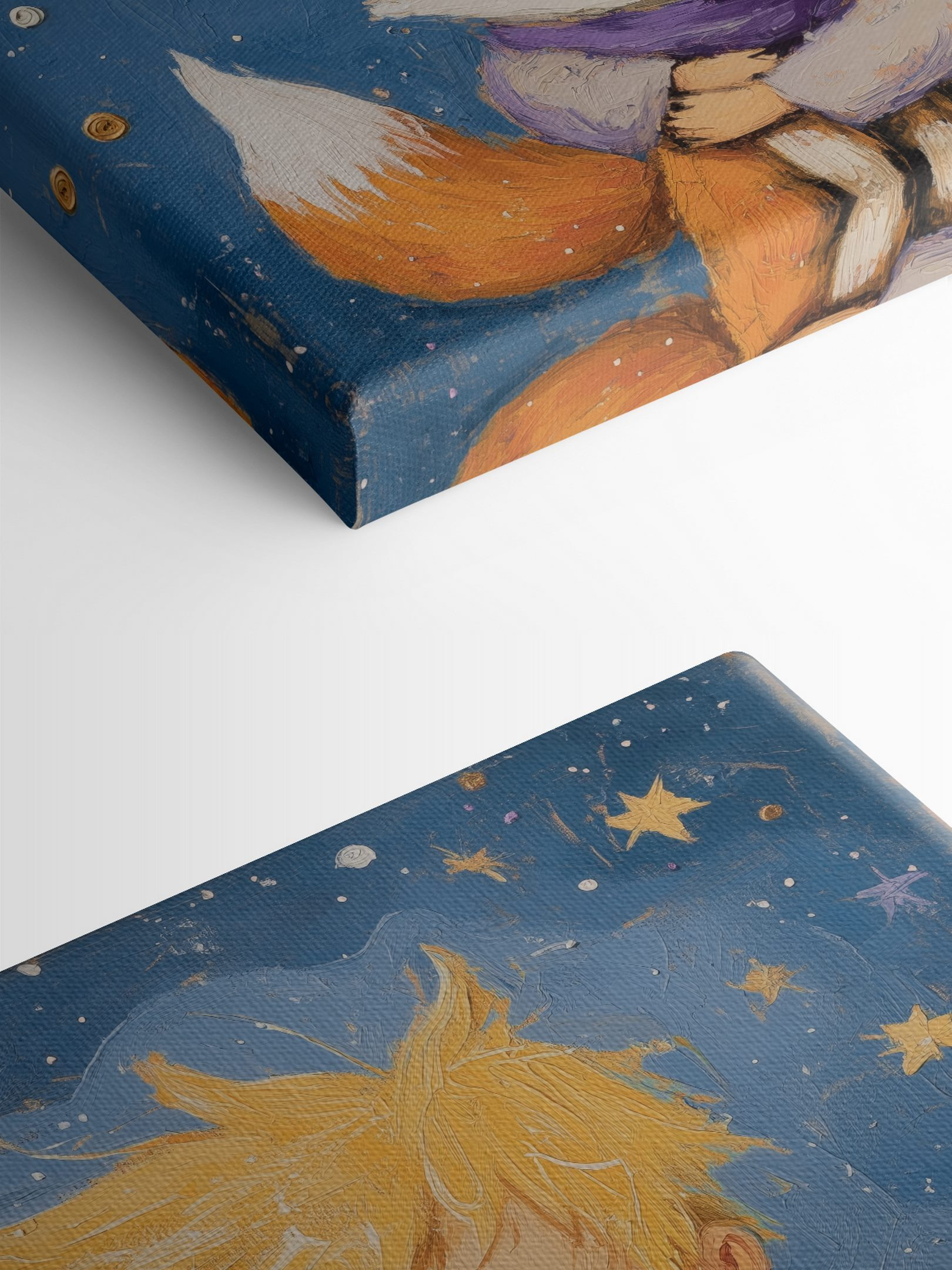Duik in een wereld waar onschuld en nieuwsgierigheid elkaar ontmoeten in deze betoverende canvasprint van een jongen die een vos knuffelt. De zachte penseelstreken schilderen een knus tafereel dat uitnodigt tot glimlachen en dagdromen. Stel je voor dat een kind troost vindt in zijn harige vrienden, terwijl de sterren boven je hoofd fonkelen – perfect om vreugde te brengen in elke kamer. Het voegt een vleugje eigenzinnigheid toe en herinnert iedereen aan de magie van alledaagse momenten. Perfect voor de kinderkamer, speelkamer of waar dan ook die wel wat warmte en charme kunnen gebruiken. Deze print zal harten zeker het gevoel geven dat ze in een liefdevolle omhelzing zijn gewikkeld.