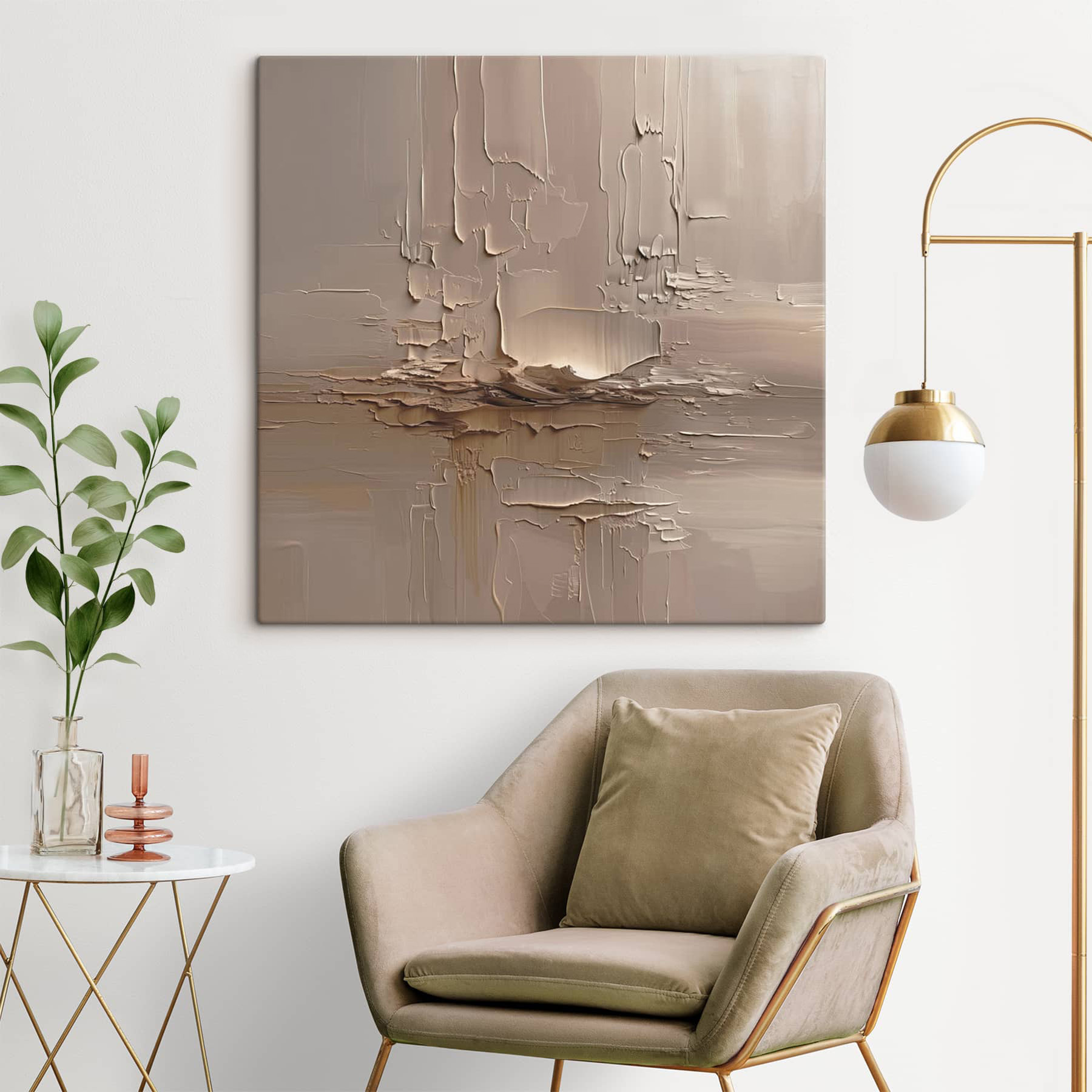 Voeg een vleugje warmte toe aan elke kamer met deze canvasprint, een heerlijke mix van aardse tinten die aanvoelen als een knusse knuffel. Stel je voor dat je de ruimte binnenloopt en verwelkomd wordt door deze zachte, uitnodigende lagen, als een serene ontsnapping na een lange dag. Het is het soort kunst dat je uitnodigt om even stil te staan, adem te halen en de schoonheid om je heen te waarderen. Verhoog die lege muur en maak er een conversatie starter van. Perfect voor iedereen die een vleugje kalme verfijning aan zijn interieur wil toevoegen – wie wist dat kunst zo vriendelijk kon zijn?