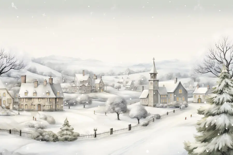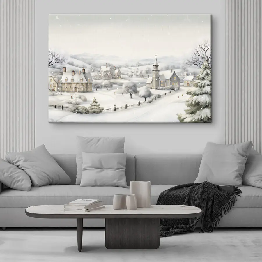 Tover je kamer om in een winterwonderland met deze charmante canvasprint met een besneeuwd dorp. Het is net een momentopname uit een gezellig sprookje, waar kerkklokjes rinkelen en sneeuwvlokjes door de lucht dansen. Stel je voor dat je je oprolt met een warm drankje terwijl je kijkt naar die schilderachtige huizen en de zachtjes vallende sneeuw. Het roept een gevoel van nostalgie op, misschien gedachten aan het maken van sneeuwpoppen of het drinken van warme chocolademelk bij het vuur. Dit stuk is niet alleen kunst, het is een venster naar vredige momenten. Perfect voor elke kamer die een vleugje wintermagie nodig heeft!