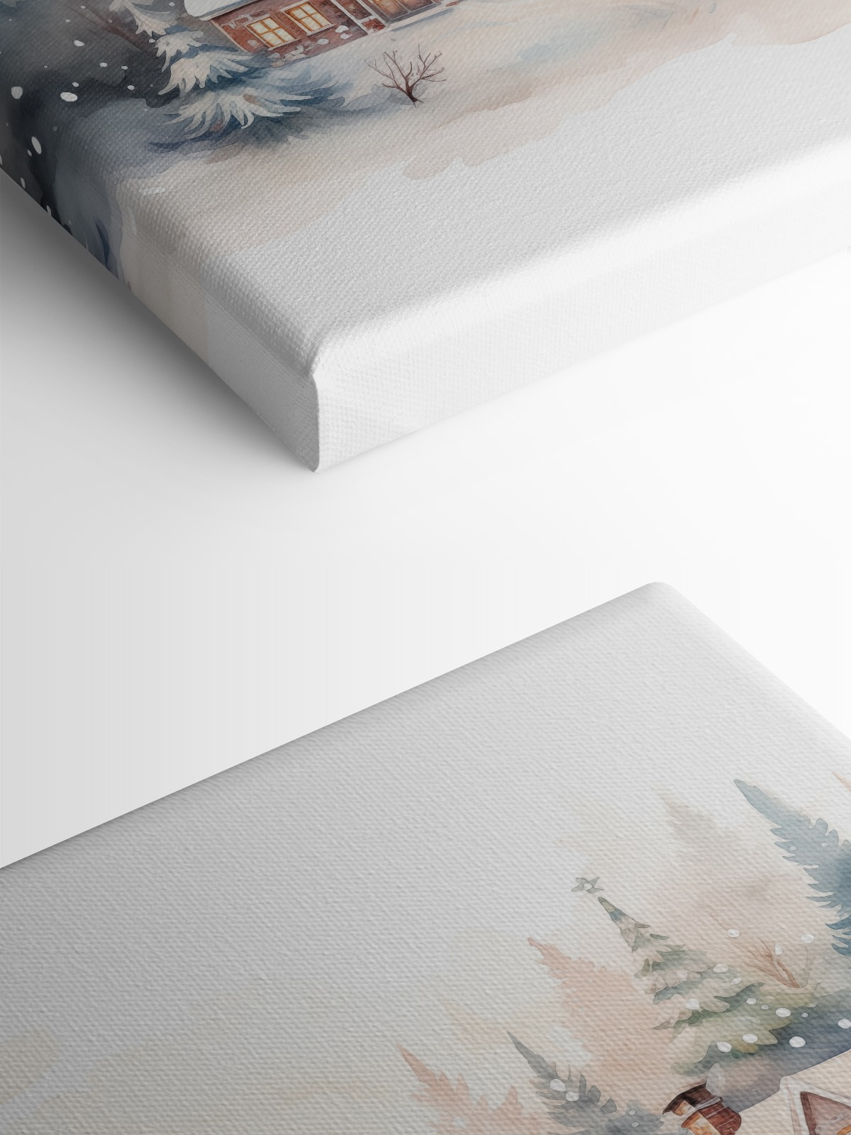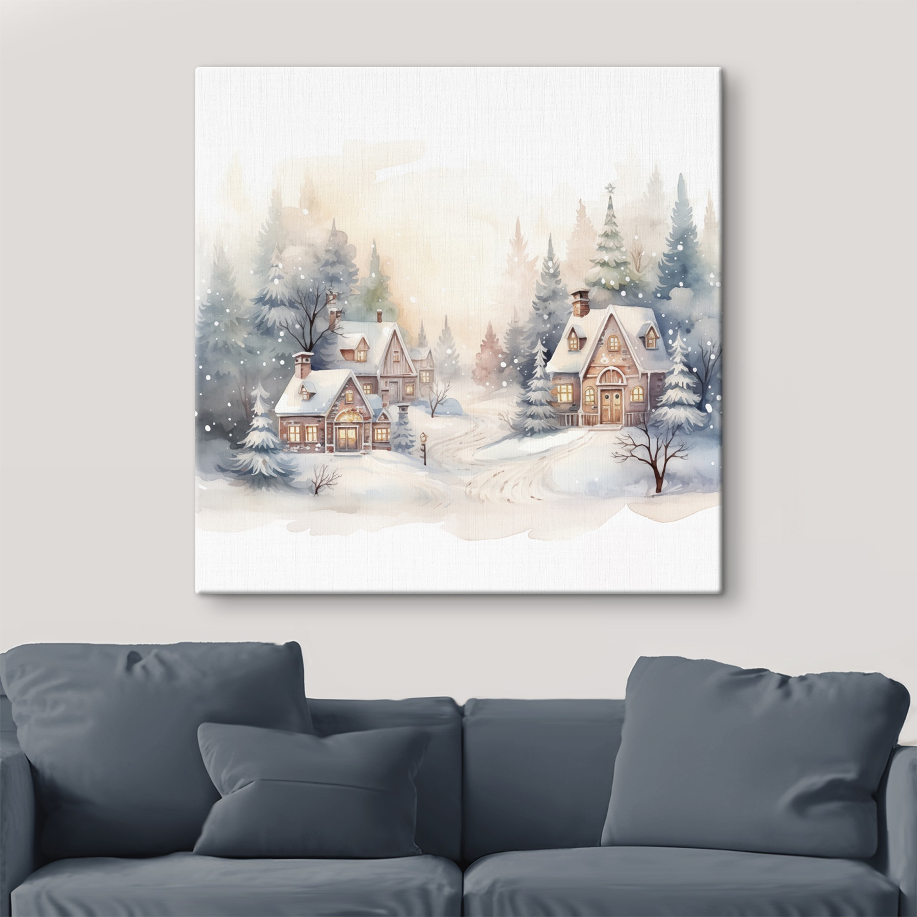 Transformeer elke ruimte met dit prachtige aquarelschilderij van gezellige huizen in een besneeuwd bos. Stelt u zich eens voor dat u zich oprolt met een warme chocolademelk, starend naar dit serene winterse tafereel waar elk detail – pluizige sneeuwvlokken, warm gloeiende ramen – een gevoel van vrede oproept. Het is als een minivakantie, het hele jaar door! Dit canvas kunstwerk is perfect voor een woonkamer of een gezellig hoekje en voegt een vleugje charme en eigenzinnigheid toe. Telkens als je langsloopt, voel je misschien die winterse warmte of hoor je het zachte knisperen van sneeuw onder je voeten. Wie heeft er een winterwonderland nodig als je muur er een kan zijn?