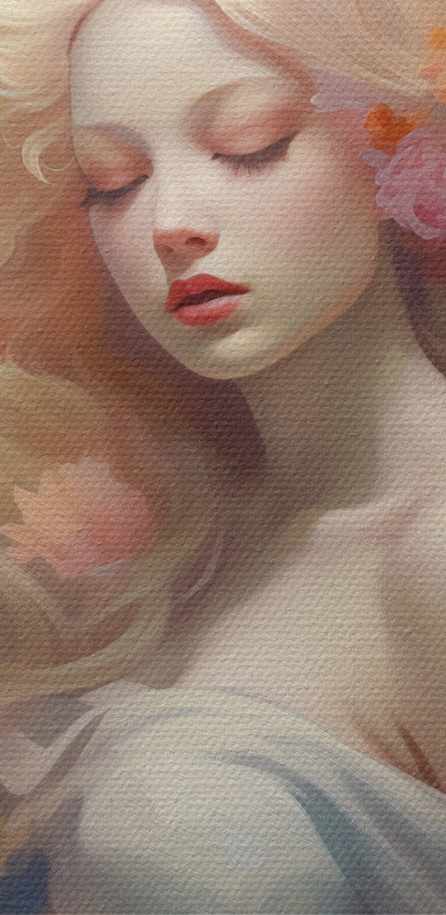 Stel je voor dat je in een wereld stapt waar gratie en natuur samen dansen. Deze prachtige canvasprint toont een serene vrouw met blonde haren, versierd met levendige bloemen, die een dromerige sfeer creëren. Het is perfect voor iedereen die een vleugje elegantie en eigenzinnigheid aan zijn of haar ruimte wil toevoegen. Stel je voor dat deze schoonheid een gezellig hoekje opfleurt of als statementstuk boven een strakke bank dient. De zachte kleuren en zachte stroming nodigen uit tot rust – de perfecte achtergrond voor een kopje koffie op een luie ochtend of om te dagdromen tijdens een rustige namiddag. Wie zou zich niet een beetje meer geïnspireerd voelen met zo’n frisse wind in de buurt? Bovendien kan het een beetje vreugde opwekken telkens als er iemand langsloopt!