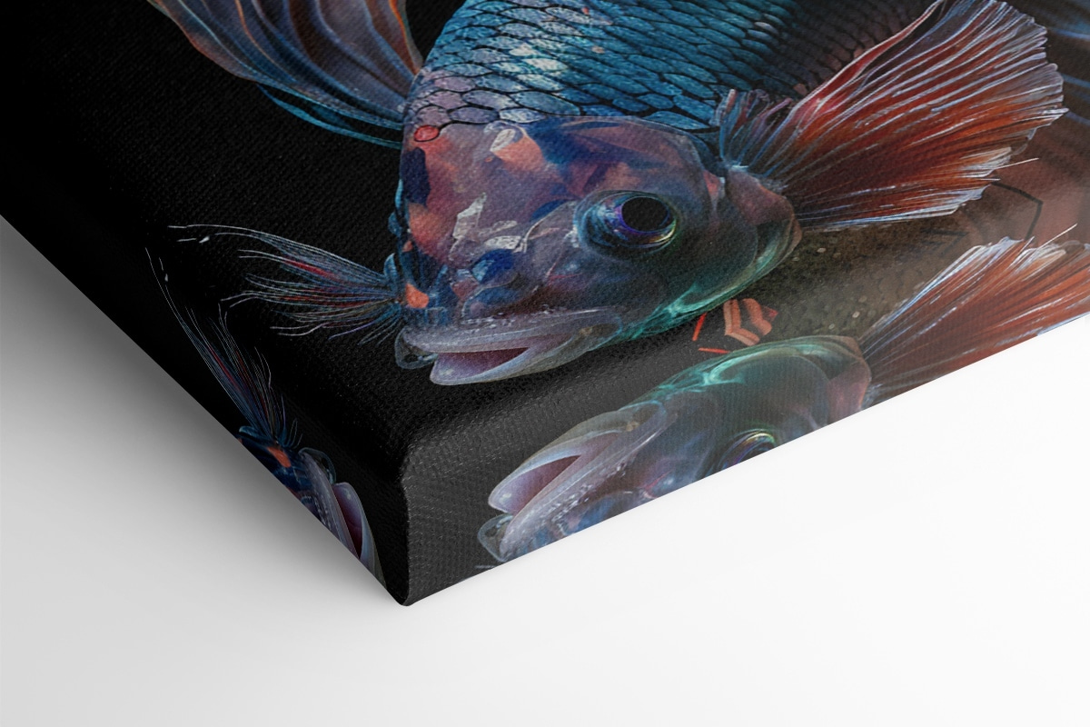 Duik in een kleurenpracht met deze prachtige canvasprint, “Fish with a Large Tail”. Het is als een klein onderwaterlandschap dat een levendige sfeer brengt op elke muur. De delicate penseelstreken vangen elke vin en schub, bijna alsof de vis klaar is om zo je woonkamer in te zwemmen. Stel je voor dat hij in een gezellig hoekje hangt en gesprekken op gang brengt – wie zou zo’n opvallend statement nou niet waarderen? Bovendien geeft het een verfrissende, rustige energie, perfect om tot rust te komen na een lange dag. Simpel gezegd, het is kunst die je een goed gevoel geeft. Wie wist dat een vis zo fantastisch kon zijn?