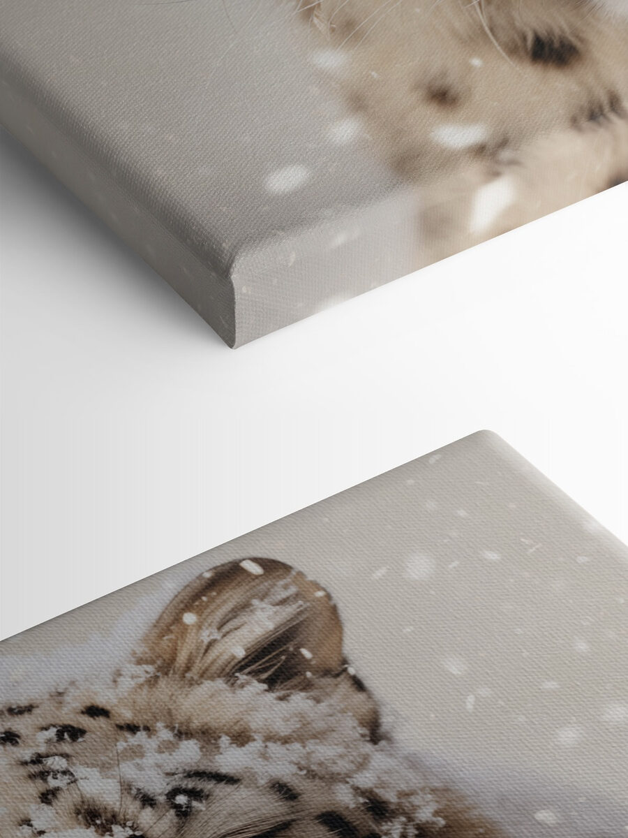 Perfect voor dierenliefhebbers of iedereen die een vleugje wild in zijn of haar kamer wil. De zachte sneeuwvlokken en die betoverende ogen geven een magisch gevoel, bijna alsof je een beetje natuur in huis haalt. Hang het boven je bank en het wordt meteen een conversatiestarter. Wie weet? Misschien inspireert het wel tot diepgaande gesprekken over het behoud van wilde dieren of gewoon over hoe geweldig luipaarden zijn. Elke blik op dit doek kan vreugde en verwondering opwekken, of gewoon een glimlach terwijl je van je koffie nipt en je verbonden voelt met de schoonheid van de wereld.