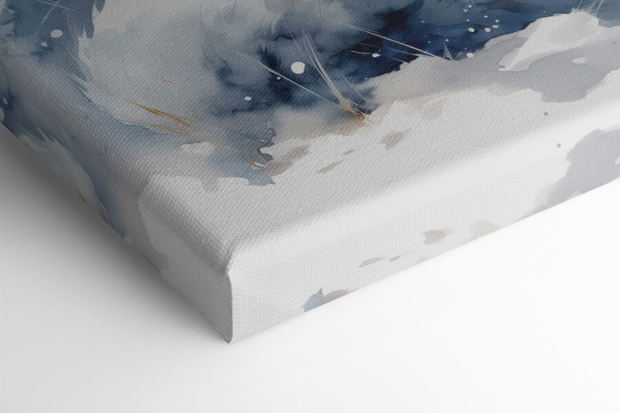 Stel je voor dat je een kamer binnenloopt en daar een charmant vosje aantreft, opgekruld en knus in een winterwonderland. Deze aquarel canvasprint legt dat serene moment perfect vast, met zacht blauw en zacht wit dat rust uitstraalt. Het is alsof het vosje je uitnodigt om even op adem te komen en te genieten van de vredige natuur.