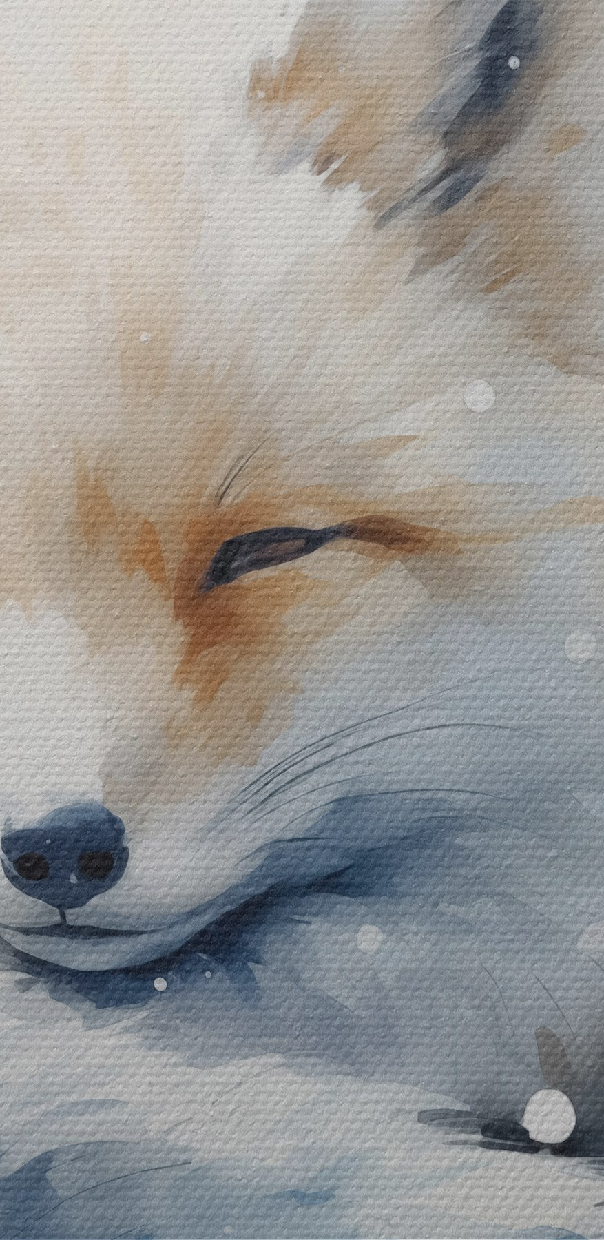 Stel je voor dat je een kamer binnenloopt en daar een charmant vosje aantreft, opgekruld en knus in een winterwonderland. Deze aquarel canvasprint legt dat serene moment perfect vast, met zacht blauw en zacht wit dat rust uitstraalt. Het is alsof het vosje je uitnodigt om even op adem te komen en te genieten van de vredige natuur.