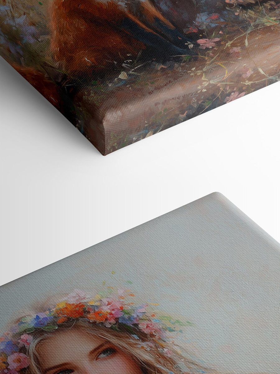 Stap in een grillige wereld met deze prachtige canvasprint, met een serene vrouw gehuld in de omhelzing van de natuur naast charmante vossen. De zachte pasteltinten en levendige bloemen creëren een dromerige achtergrond die aanvoelt als een zachte knuffel voor je muren. Stel je dit eens voor in een knusse leeshoek of een lichte gang, die de ruimte meteen opfleurt. Het is alsof je een beetje sprookjesachtige magie in huis haalt. En wie wil er nou geen trio schattige vossen die hem gezelschap houden? Ze stralen warmte en nieuwsgierigheid uit. Perfect voor wie houdt van de schoonheid van de natuur en een vleugje eigenzinnigheid!