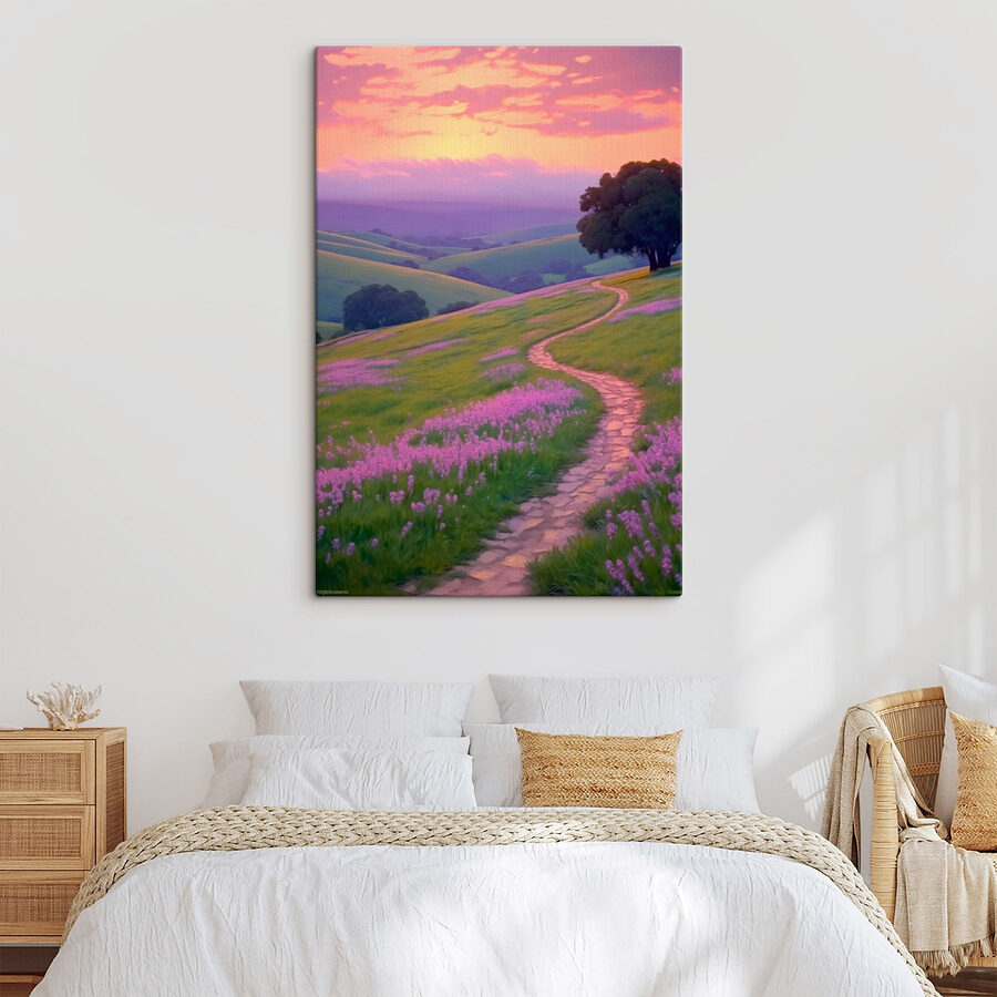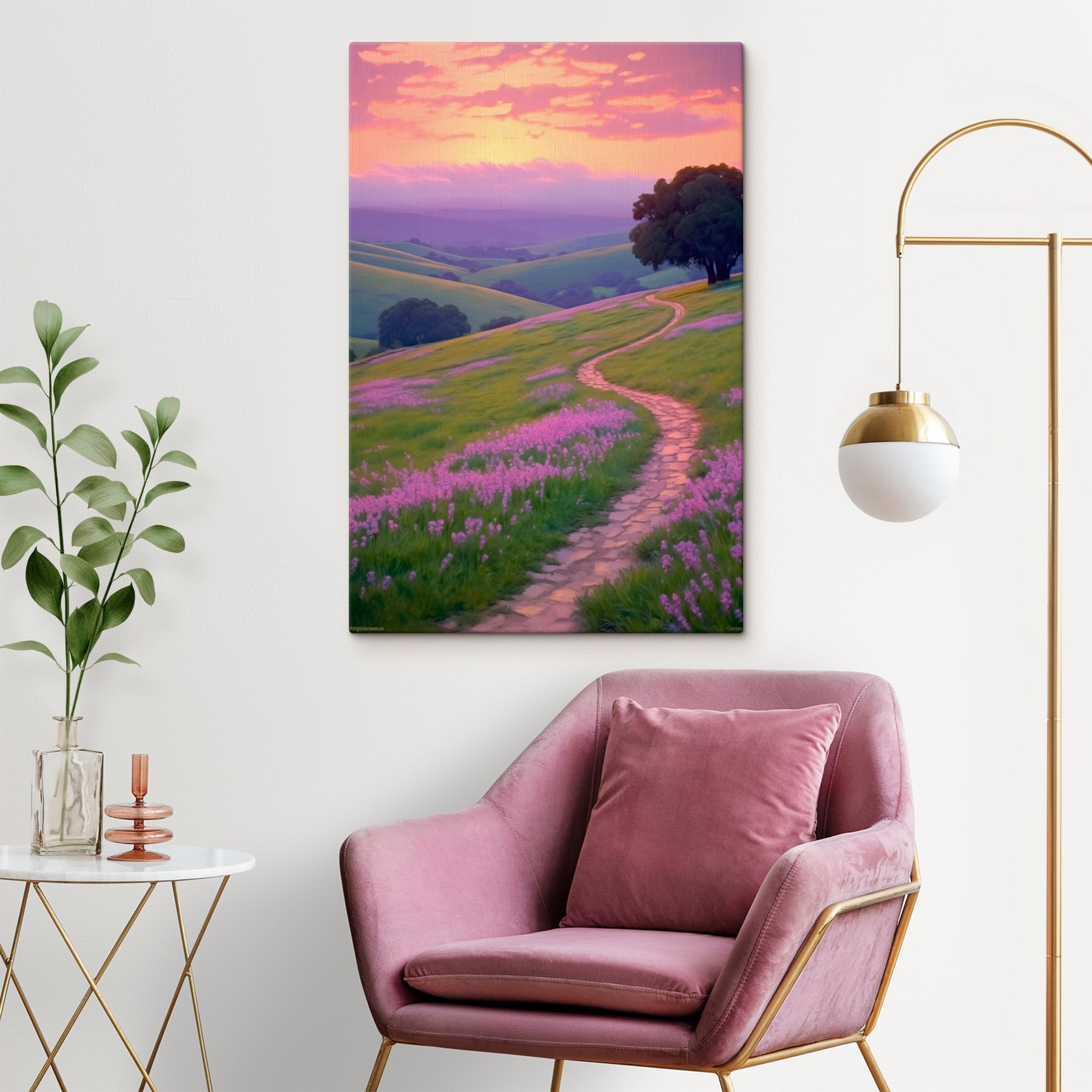 Stel je voor dat je over een zonovergoten pad loopt, omringd door levendige paarse bloemen die zachtjes wiegen in de wind. Deze canvasprint, “Path through a Field of Purple Flowers”, legt dat gelukzalige moment prachtig vast. Het is als een kleine ontsnapping in de natuur – perfect om een woonkamer op te fleuren of een sereen tintje te geven aan een gezellig hoekje. Stel je voor: vrienden komen samen, er wordt gelachen en je muren komen tot leven met kleur en vreugde. Het is niet zomaar kunst; het is een vibe! De zachte tinten nodigen uit tot kalmte en maken van elke blik een minivakantie. Wie zou dat niet willen?