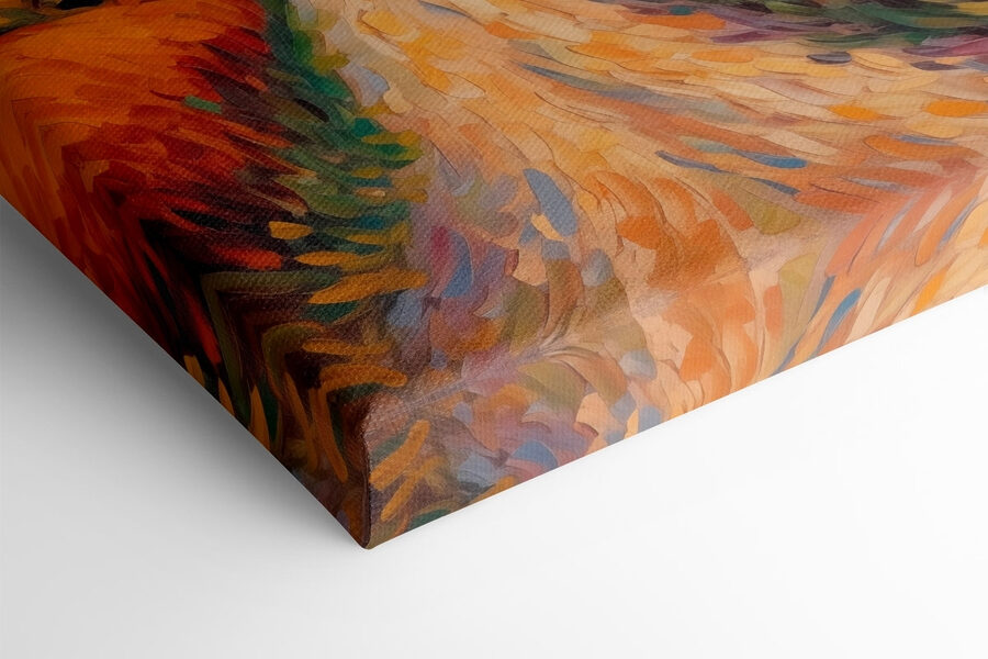 Stel je voor dat je over een zonovergoten pad loopt, geflankeerd door gouden tarwevelden. Deze betoverende canvasprint van een schilderachtig huis tussen de wuivende stengels brengt die serene sfeer je kamer binnen. De levendige kleuren en grillige penseelstreken creëren een uitnodigende sfeer – perfect om bij weg te dromen met een kopje koffie of om na een lange dag in gedachten verzonken te raken. Hang het in de woonkamer of een gezellig leeshoekje en zie hoe het een gesprek op gang brengt of gewoon een vleugje charme toevoegt. Het is alsof je overal een stukje landelijke gezelligheid hebt. En wie houdt er niet van een perfecte achtergrond voor een zonsondergang? Het is een herinnering aan eenvoud, vrede en misschien zelfs een beetje avontuur dat achter de horizon wacht.
