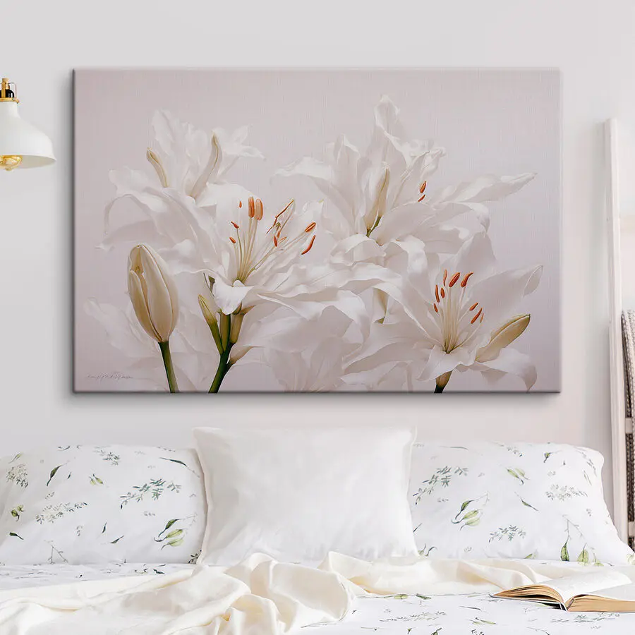 Een kamer opfleuren is makkelijker dan je denkt! Maak kennis met deze prachtige canvasprint met een groep elegante witte bloemen. Echt, ze zien eruit alsof ze zo uit een vredige tuin zijn geplukt en zo in je woonkamer zijn gedropt. Stel je voor dat je elke dag langs deze schoonheid loopt – het heeft een rustgevende uitstraling die fluistert: “Hé, ontspan je even!”. Perfect voor elke ruimte, het brengt een vleugje natuur binnenshuis zonder het onderhoud. En wie houdt er niet van een bloem die niet verwelkt? Elk bloemblaadje lijkt bijna te dansen en nodigt warmte en vrolijkheid uit in je huis. Of het nu in een gezellig hoekje hangt of als een opvallend stuk, dit kunstwerk verandert muren in fluisteringen van sereniteit. Het is als een kleine tuinoase, water geven is niet nodig!