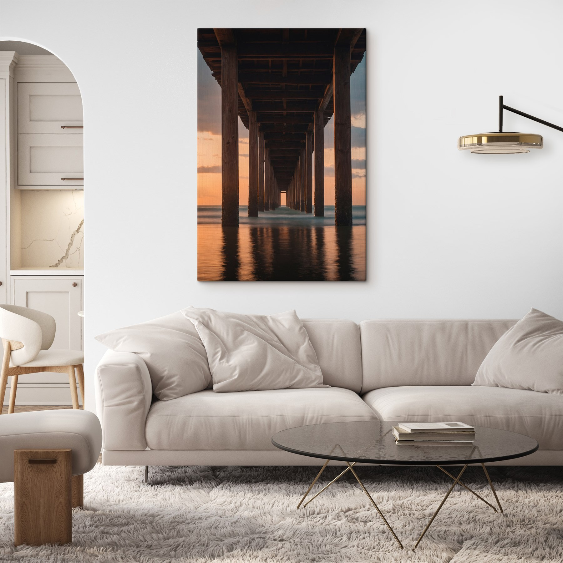 Transformeer elke ruimte met deze prachtige canvasprint, “Houten brug in het water”. Stel je voor dat je onder die stevige balken loopt en de zachte bries en het gefluister van de oceaan voelt. Het is net een kleine vakantie in je woonkamer! De warme tinten van de zonsondergang stralen zachtjes en brengen een gezellige sfeer die de ziel tot rust brengt. Vrienden zullen één blik werpen en zuchten van afgunst – geef ze al het reisgevoel zonder dat ze het huis hoeven te verlaten. Perfect in een hal of boven een comfortabele bank, het is een stukje natuur dat vreugde opwekt en misschien zelfs een paar dagdromen. Wie zou daar niet van houden?