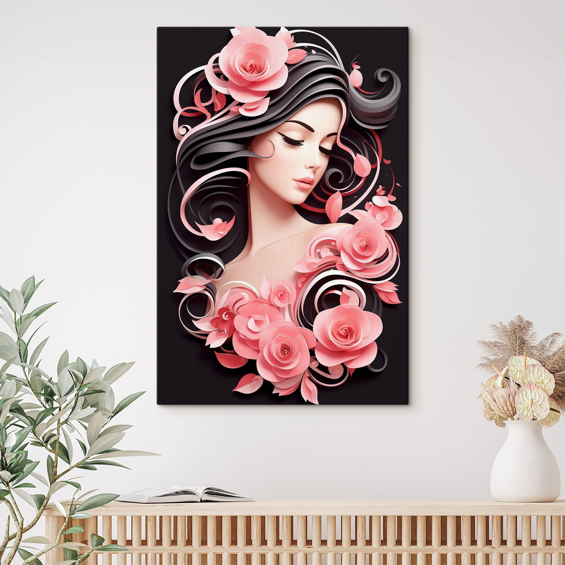 Transformeer je ruimte met deze fascinerende canvasprint met een vrouw getooid met delicate roze bloemen. Het ingewikkelde ontwerp trekt je naar binnen, met vloeiend haar en bloeiende bloemblaadjes die geheimen van de natuur lijken te fluisteren. Stel je voor dat je deze schoonheid ophangt in een gezellig hoekje waar het zonlicht eroverheen danst en een warmte creëert die aanvoelt als een knuffel. Het is meer dan een decorstuk; het brengt gesprekken op gang en zorgt voor een glimlach. Stel je een regenachtige dag voor: deze print doet je denken aan lentebloesems en maakt elke blik een beetje vrolijker. Perfect voor wie hunkert naar een vleugje eigenzinnigheid en elegantie!