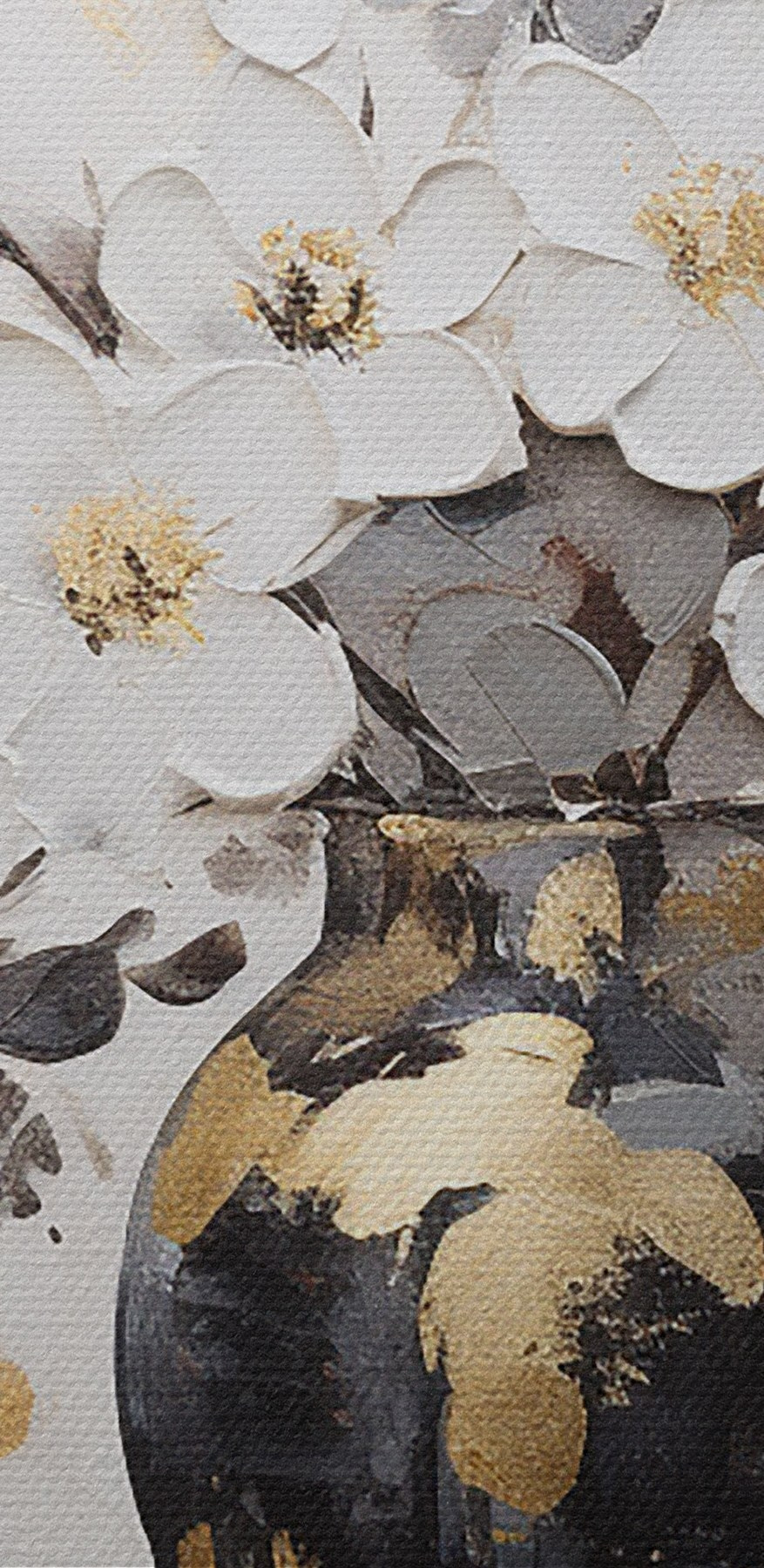 Fleur elke kamer op met deze betoverende canvasprint van bloemen in een vaas. Stel je voor dat deze schoonheid je woonruimte siert en moeiteloos een vleugje kleur en charme toevoegt. De delicate bloemen lijken te dansen, terwijl de artistieke wervelingen een gevoel van beweging en leven creëren. Of het nu een gezellig leeshoekje is of een eethoek, dit stuk nodigt uit tot warmte en gesprek. Vrienden zullen waarschijnlijk vragen waar het vandaan komt, want wie wil er nou niet een beetje bloemenmagie delen? Perfect voor degenen die hunkeren naar een vleugje natuur zonder het gedoe van echte bloemen – water geven is niet nodig!