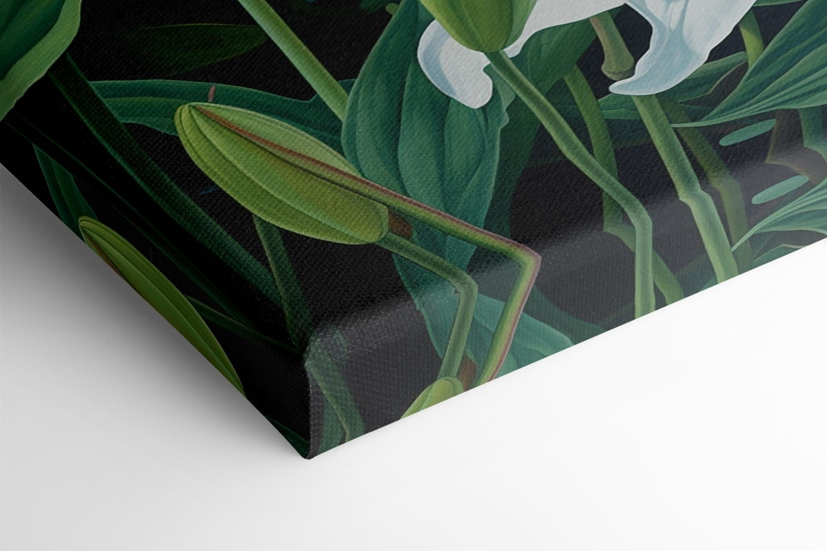 Verander elke ruimte in een serene oase met “Delicate Lilies in Serene Waters”. Stel je die prachtige witte lelies voor die zachtjes drijven op rustig water – het is net een kunstwerk van de natuur aan je muur! Deze canvasprint is niet alleen decoratief, het is een verademing. Stel je voor dat je lekker gaat zitten met een kopje thee, naar deze bloemen staart en de vredige sfeer over je heen voelt komen. Perfect voor een woonkamer, slaapkamer of zelfs die ene muur die altijd een beetje te kaal lijkt. Het is een gespreksstarter, een dagdromer en ja, een instant humeurversterker! Wie wil dat nou niet?