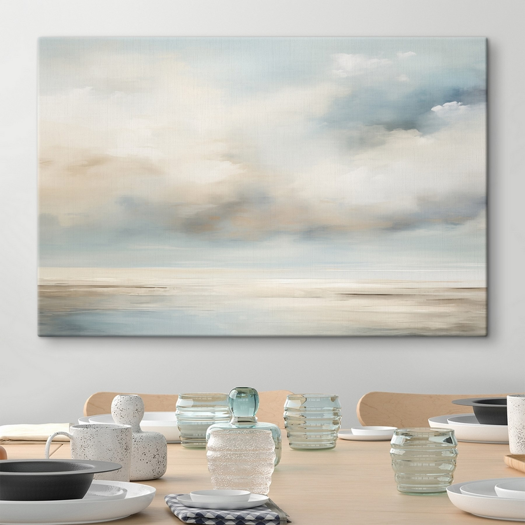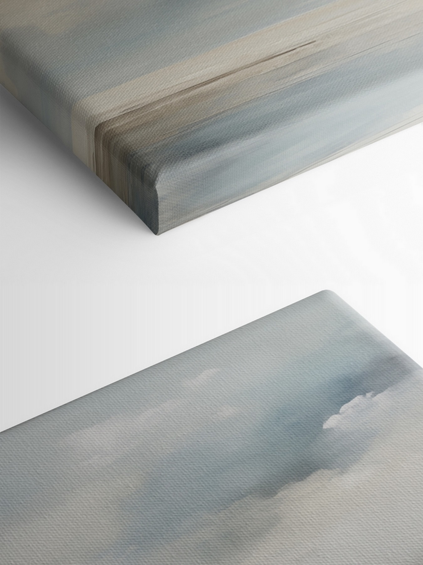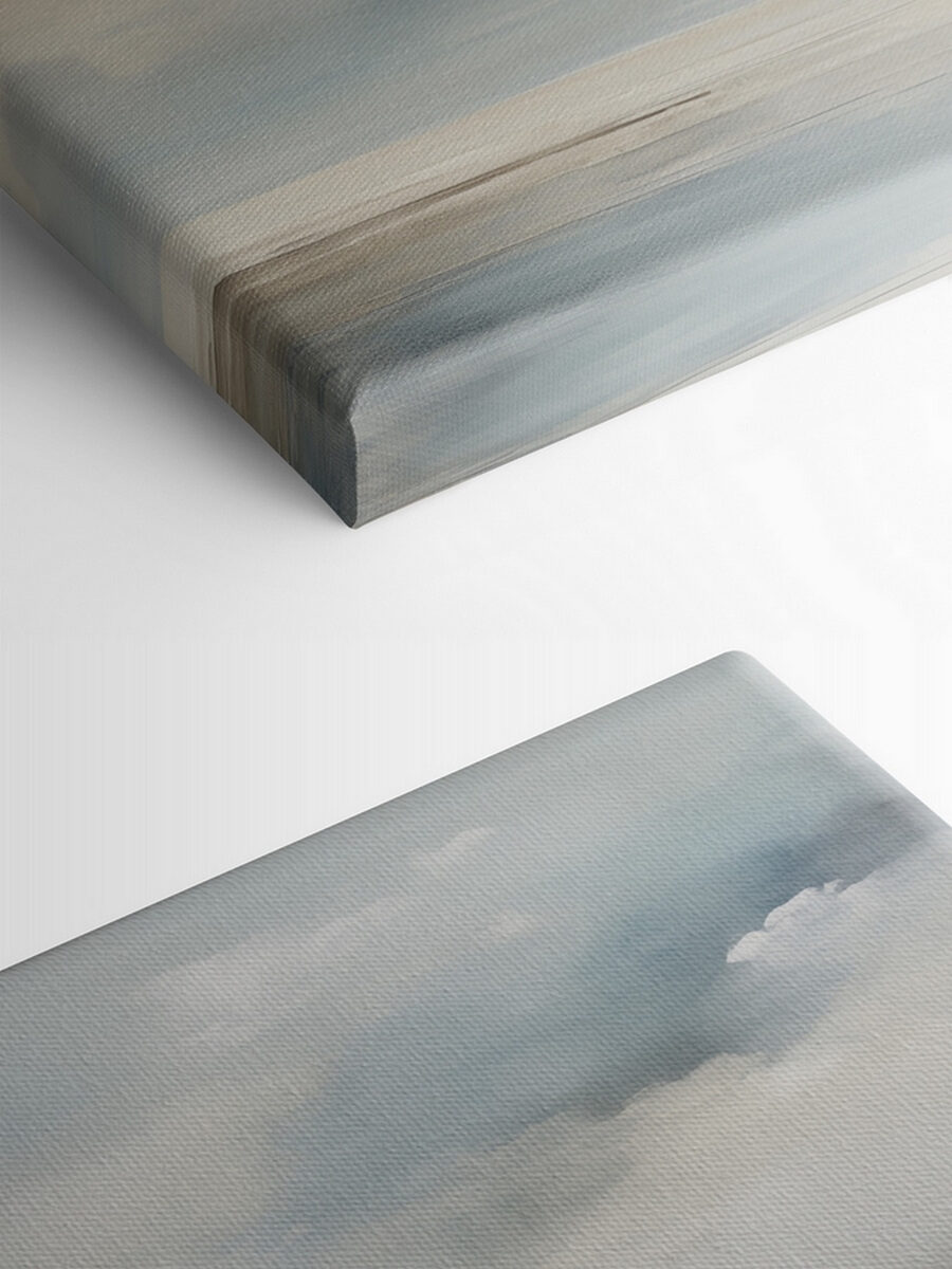 Stel je voor dat je in een serene ontsnapping stapt telkens als je een blik werpt op “Cloudy Sky Over a Body of Water”. Deze canvasprint legt dat dromerige moment vast waarop de zon door zachte wolken piept en weerspiegelt op zachte golven. Het is alsof je de kalmte van de natuur naar je knusse hoekje brengt. Stel je een regenachtige dag voor – lekker knus met een kopje thee, terwijl de rustgevende blauwe en witte kleuren je meevoeren naar een rustige kust. Perfect om een saaie muur op te fleuren of een vleugje elegantie aan elke ruimte toe te voegen, het is een stuk dat aanzet tot dagdromen en diepe gedachten. Kijk ernaar en verdwaal!