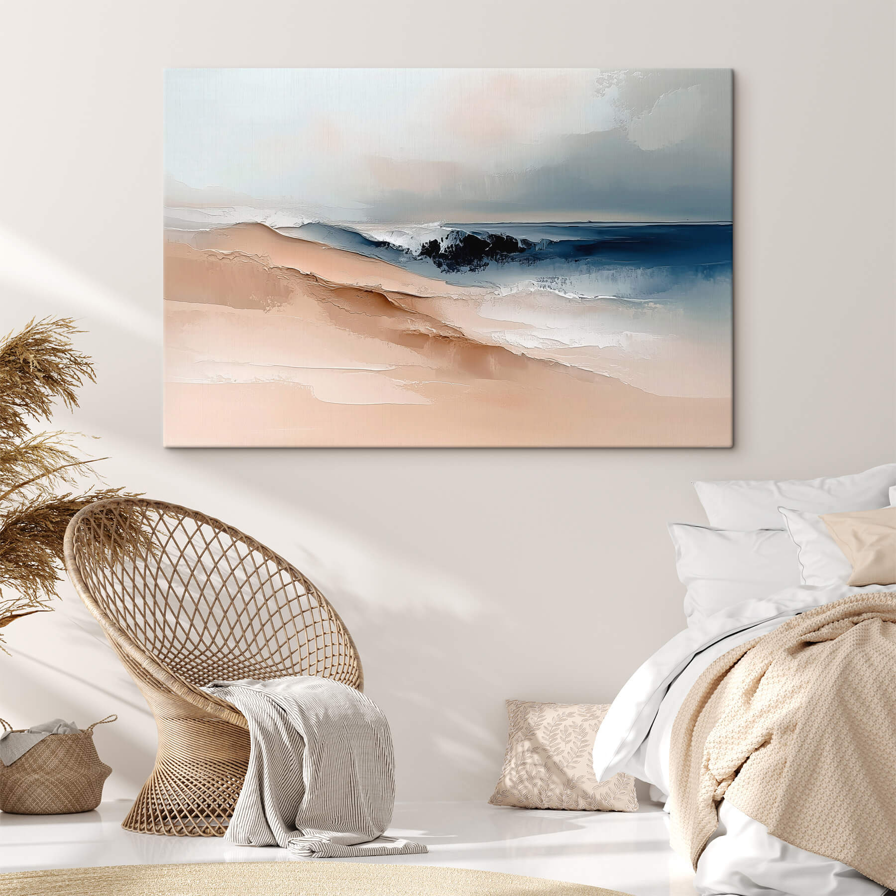 Perfect voor natuurliefhebbers of iedereen die droomt van een vakantie aan de kust, voegt dit stuk een vleugje sereniteit toe aan elke muur. Zie het voor je in een gezellige woonkamer of een lichte slaapkamer, waar het je eraan kan herinneren diep adem te halen en te ontspannen. Bovendien kan het je inspireren om je volgende strandavontuur te plannen – of op zijn minst een sessie natuurdocumentaires te gaan kijken!