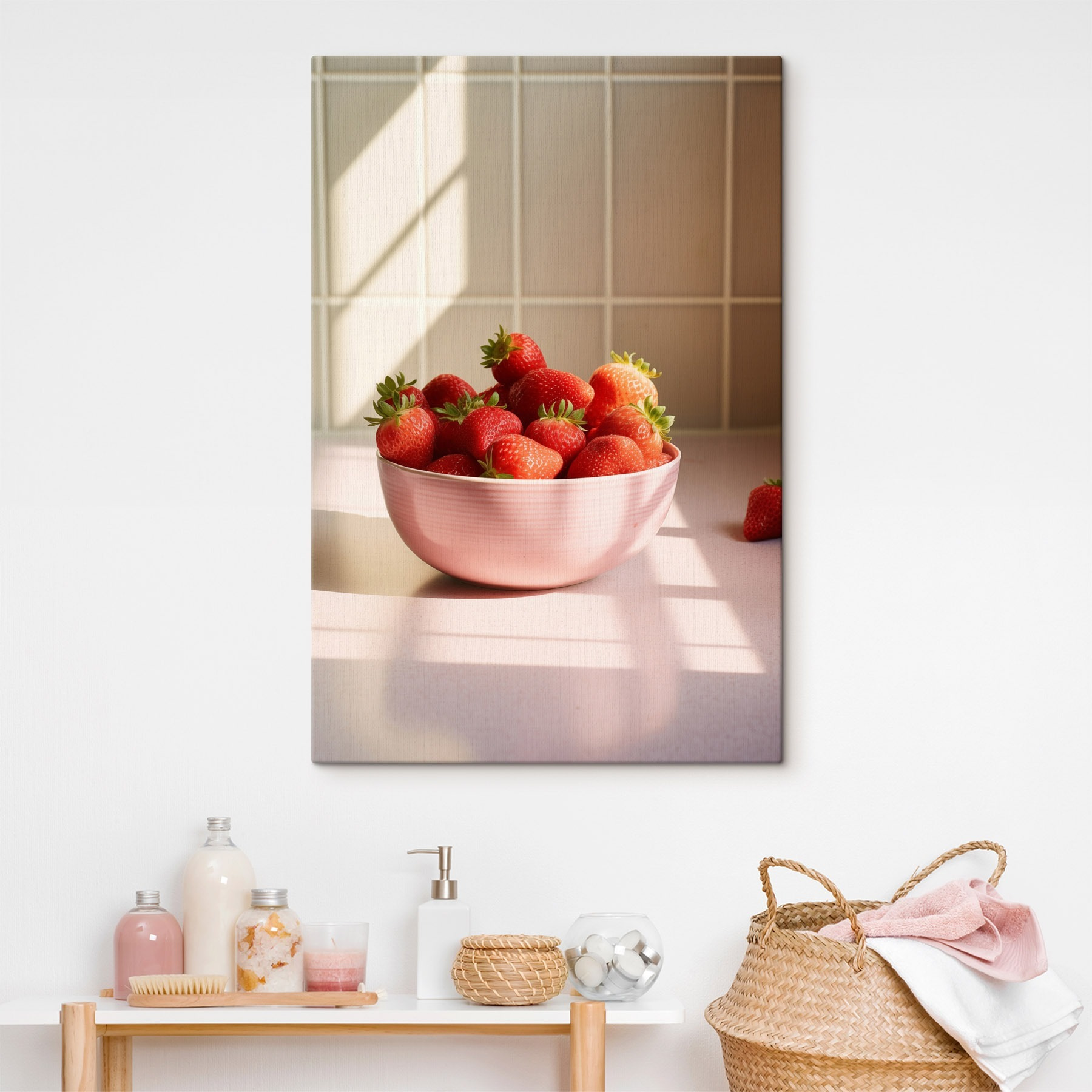 Fleur elke ruimte op met deze prachtige canvasprint met een schaal boordevol heerlijke aardbeien. Het is als een stukje zomer het hele jaar door – zoet, levendig en oh-zo-uitnodigend! Stel je voor dat je je keuken binnenloopt en begroet wordt door deze uitbarsting van rood. Perfect voor mensen die houden van een vleugje fruitig plezier in hun inrichting. Bovendien krijg je zin om een aardbeientaart in elkaar te flansen of in ieder geval te doen alsof je een culinair genie bent. Hang het in de eethoek en het zal zeker wat smakelijke gesprekken losmaken. Proost om elke dag een beetje zoeter te maken!