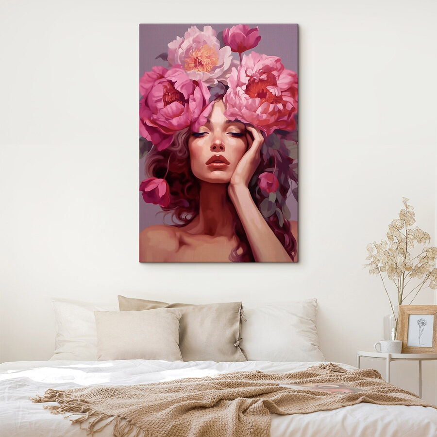 Voeg een vleugje magie toe aan elke ruimte met deze betoverende canvasprint van een vrouw versierd met levendige bloemen. Stelt u zich eens voor dat u een kamer binnenloopt die wordt opgevrolijkt door uitbarstingen van kleur en leven, waardoor de geest onmiddellijk wordt opgewekt en de vreugde wordt aangewakkerd. De mooie bloemen lijken geheimen van de natuur te fluisteren en nodigen je uit om een moment te nemen en diep adem te halen. Dit stuk past perfect in knusse hoekjes of als een opvallend middelpunt, en past moeiteloos in zowel een moderne als klassieke inrichting. Perfect voor iedereen die houdt van een vleugje florale charme, het vangt die heerlijke sfeer van een zonovergoten tuin. Verdwalen in die zachte kleuren kan je bijna het gevoel geven dat je door een dromerige weide wandelt.