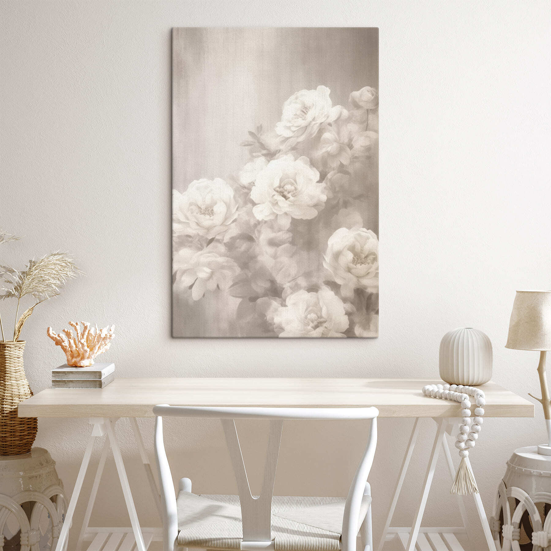 Transformeer je ruimte met dit betoverende canvas met de titel “Canvas Schilderijen: Groep witte bloemen”. Stel je voor: een serene bloei van zachte bloemblaadjes, hun delicate vormen fluisteren rust. Perfect voor die knusse hoekjes of die muur die een beetje eenzaam aanvoelt. Je weet wel, die ene die een vleugje gratie nodig heeft? De gedempte kleuren creëren een rustgevende sfeer die uitnodigt tot dagdromen. Stel je voor dat een vriend of vriendin langskomt en zijn of haar ogen oplicht als ze een glimp opvangen. Het is net alsof je thuis een geheime tuin hebt – water geven is niet nodig! Een kunstwerk dat uitnodigt tot bewondering en een glimlach.