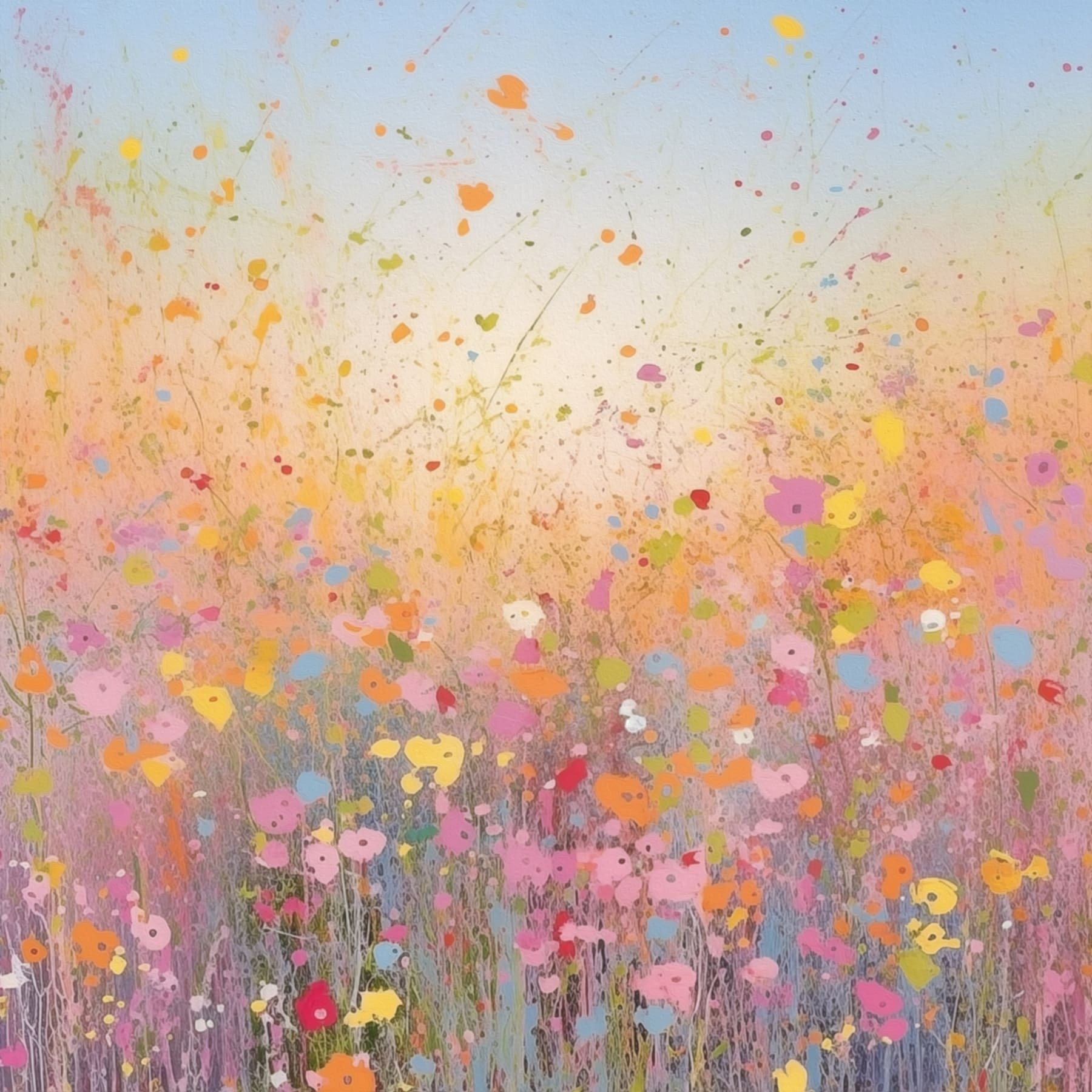Stap in een levendig bloemenveld met deze canvasprint die barst van het leven en de kleur. Stel je voor dat je in je woonkamer zit en plotseling wordt meegevoerd naar een zonovergoten weide, waar bloesems zachtjes wiegen in de wind. De speelse spetters roze, oranje en blauw zijn als confetti die wordt gegooid om de schoonheid van de natuur te vieren. Dit sieraad versiert niet alleen een muur, het brengt pit in een ruimte en zorgt voor vreugde en nostalgie. Perfect voor gezellige hoekjes of levendige eetkamers, het is een heerlijke herinnering aan die zonnige dagen waarop alles mogelijk leek. Wie heeft er een groene vingers nodig als je deze vrolijke bloem hebt hangen?