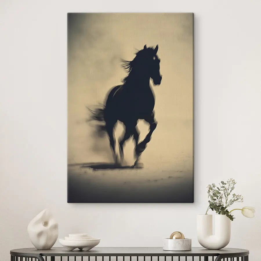 Breng de wilde geest van de natuur in je interieur met deze prachtige canvasprint “Horse Running in the Snow”. Zie het voor je: dit majestueuze dier galoppeert door een besneeuwd landschap, een harmonie van kracht en gratie. Het is alsof het paard een geheim heeft, een geheim dat fluistert over vrijheid en avontuur. Stel je voor dat je een blik werpt op dit werk terwijl je van je ochtendkoffie nipt; het doet je dagdromen over ijzige velden en open hemel. Dit doek is niet alleen kunst; het is een vleugje leven, een gespreksstof en een vriendelijke herinnering dat schoonheid vaak in de jacht ligt. Perfect voor dierenliefhebbers of iedereen die een vleugje inspiratie op zijn muur nodig heeft.