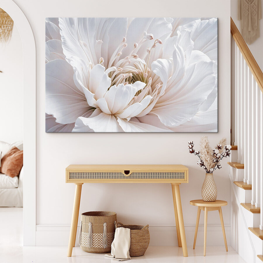 Transformeer elke ruimte met de prachtige “Delicate Petals in Soft White Hues” canvasprint. Dit stuk is niet zomaar kunst; het is als een frisse wind. Stel je voor: een knus hoekje badend in natuurlijk licht, je favoriete boek in de hand en dit meesterwerk zachtjes stralend in de buurt. De bloemblaadjes, zo romig en grillig, creëren een bijna dromerige sfeer – perfect om gezellige gesprekken op gang te brengen of gewoon om te dagdromen. Of het nu in een woonkamer is of een zachte aanraking in een slaapkamer, het nodigt uit tot kalmte en warmte. Wie had gedacht dat een bloem zo elegant en toch zo sympathiek kon zijn? Het is het soort decoratie dat een verhaal vertelt zonder een woord te zeggen. Perfect voor wie de schoonheid van de natuur waardeert – zonder de pollen!